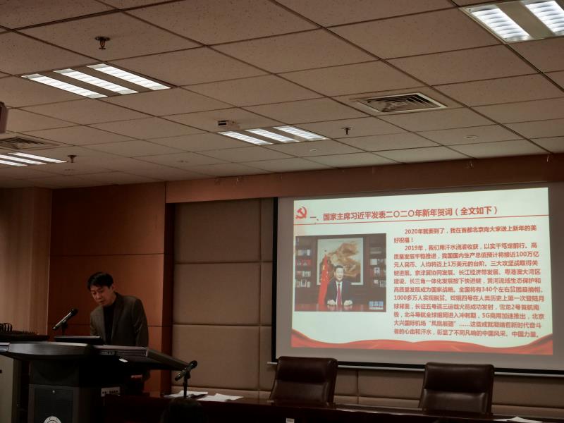 会上,张帅首先带领大家学习了国家主席习近平发表的二〇二〇年新年贺词。他指出,习近平总书记的新年讲话言辞质朴,感情深厚;贺词中串联的大事件与小事情,既有高度也有温度。张帅选取了习近平总书记在新年贺词中具有代表性的金句,对“我们为共和国70年的辉煌成就喝彩,被爱国主义的硬核力量震撼”“冲锋号已经吹响”“只争朝夕,不负韶华”等做了有力的阐释。他强调,习近平总书记的新年贺词充满信心与斗志,见证情怀与担当,希望全体教职工能深入领会贺词精神,不忘初心,立足岗位,不断提升公司公司产品水平。