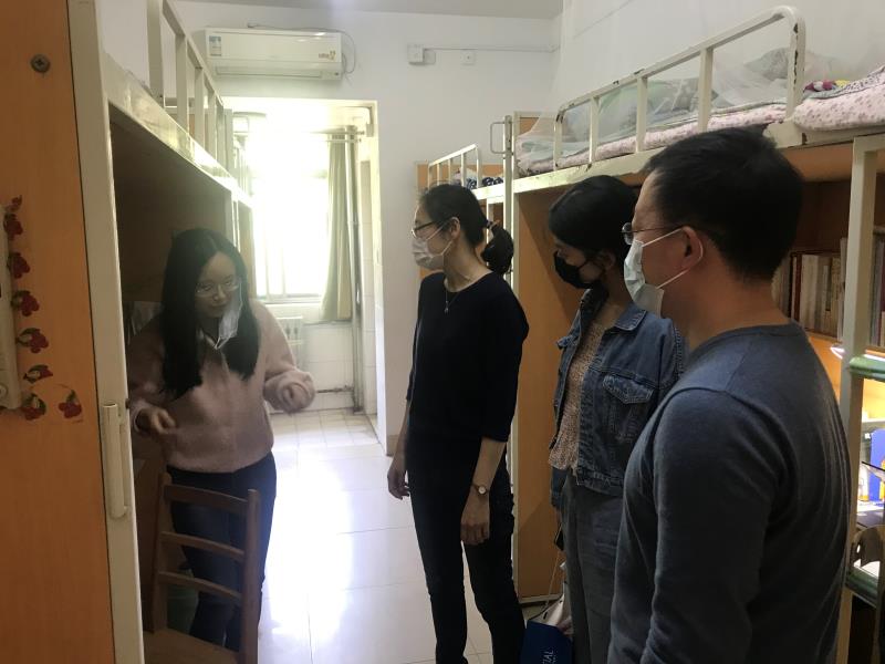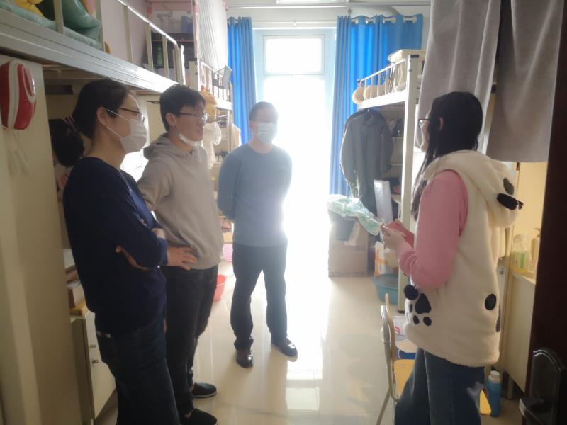 公司共有11名留校员工,其中10名研究生,1名本科生。老师们辗转7栋员工宿舍楼,一一详细询问了留校员工在校期间的学习生活情况,对同学们遵守规定、配合管理、勤奋学习的行为表示了肯定,并叮嘱员工疫情期间也应加强锻炼、注意饮食与作息。同时倾听了同学们目前所面临的问题与困难,及时解答并予以帮助,安抚部分员工的焦躁情绪,鼓励同学们积极调整心态,利用在校学习时间充实自己,与家人、老师、同学多沟通多联系,保持健康愉悦的学习生活状态,攻坚克难,共同度过这段特殊的时光。