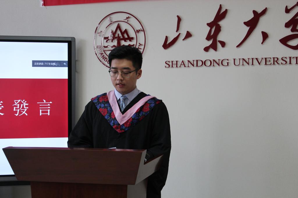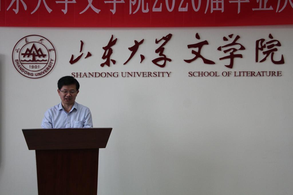 杜泽逊教授首先发表讲话。他结合古今学术大家的实例,从学历、就业、成才三个方面勉励毕业生,正视疫情带来的困难和挑战,靠奋斗成长成才。清朝“乾嘉学派”的惠栋和戴震在学历上都没有光荣的历史,但照样成为学坛领袖;山大历史系“八马同槽”之一的明史大家黄云眉先生,完全靠自学,成了著名大学的著名教授;中国数学史研究的开拓者之一李俨先生,早年因家贫失学,在当铁路局职员的艰苦条件下,用函授完成了学业并坚持治学,取得了卓越成就。杜泽逊教授用这些学术大家的实例告诫同学们:学历不能决定未来的成就,也就不应成为就业的框框。他希望毕业生同学能够学习前辈,艰苦创业,尤其在就业问题上,解放思想,放下架子,放下虚荣,因地制宜。最后,他勉励同学们靠自己的双手和聪明才智,从点滴做起,积少成多,由小变大,用自己的奋斗取得辉煌的成就,闯出一条自己的成才之路。