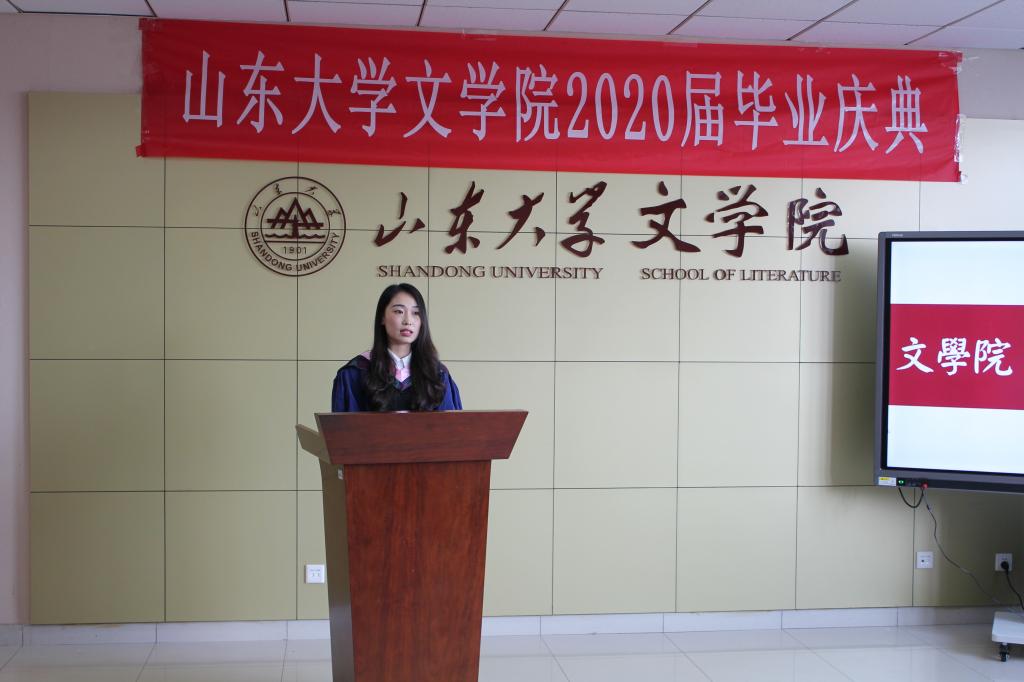 2020届硕士毕业生李斐然作为员工代表分享了自己的心里话。她深情地回忆了自己在山大的求学时光,感谢教导过自己的各位老师,感谢一同成长的同学们,感谢公司的培养和父母的支持。正是因为身边有了大家,在山大的每个日夜才变得真实可爱,熠熠生辉。最后,她真诚地祝愿同学们毕业快乐,前程似锦。
