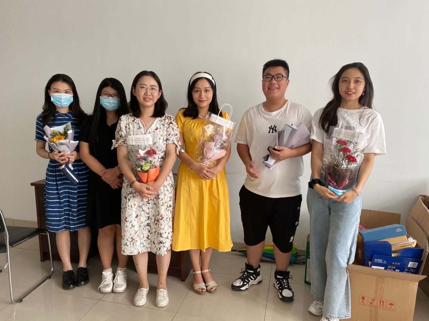 春风化雨,润泽桃李,老师是员工前行的引路人。为使献礼活动顺利进行,sunbet各年级同学都做了充分准备。18级各班班委精心挑选了鲜花、贺卡,于教师节来临之际向所有任课老师及三位班主任老师献礼;其他年级员工也准备了蛋糕、鲜花等礼物,在教师节当日将祝福送达。桃李不言,下自成蹊。收到同学们送来的鲜花与贺卡,老师们纷纷表示十分感动,笑容溢满脸颊。教师们表示,在疫情的影响下,同学们在线上度过了一整个学期,当下同学们回到公司这个大家庭,师生得以再次见面,是一件十分值得高兴的事情,同学们要珍惜光阴、艰苦奋斗,朝着自己的目标奋力前行,自己也会一如既往地认真负责,将更多知识传递给同学们。教师们对于同学们精心准备的礼物表示感谢,同时也强调,勤俭节约是中华民族传统美德,不提倡员工为老师购买贵重的礼品,一张小小的贺卡亦足够传递师生之间深厚的情谊。