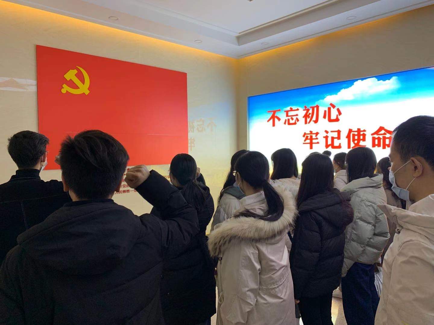 最后,此行全体党员来到陈列馆二层,面对悬挂的巨幅中国共产党党旗,一起重温入党誓词。大家高举右手,庄严宣誓,一字一句坚定有力地回响在整个大厅。入党誓词并不难记,难的是终身坚守。张博说,希望各位同志能够将入党誓词内化于心,外化于行,不忘共产党人的初心,思考自己作为新时代员工党员的历史使命,争做堪当民族复兴大任的时代新人。