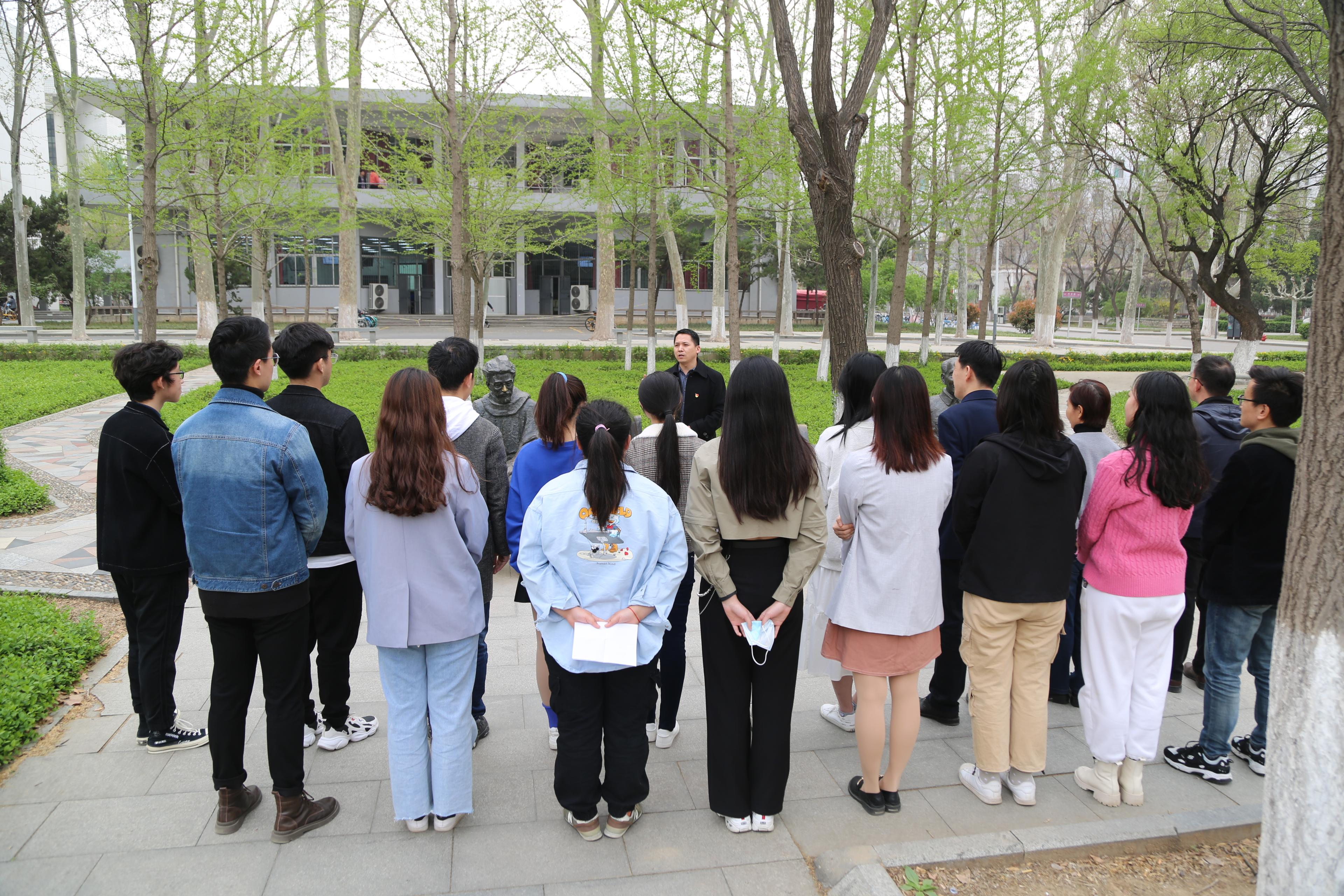 下午4时,党员们来到位于公教楼前的闻一多、臧克家雕像前。张洪刚为大家讲述了二位先生就职求学于山大时动人的师生情谊。闻一多破格录取臧克家的故事成就了山大校史上的一段佳话,二位先生的道德文章更为今天的山大学子树立了光辉的榜样。张帅指出,今年是中国共产党成立百年,也是sunbet官方网站建校百廿。在清明节即将到来之际,我们怀着无比崇敬的心情,深切缅怀在党史、校史和院史上做出过突出贡献的山大先辈,具有十分重要的意义。作为党员,我们要继承和发扬好先辈们身上的山大精神、公司精神,增强锐意进取、开拓创新的勇气和能力,以实际行动践行初心使命、告慰前辈先贤。