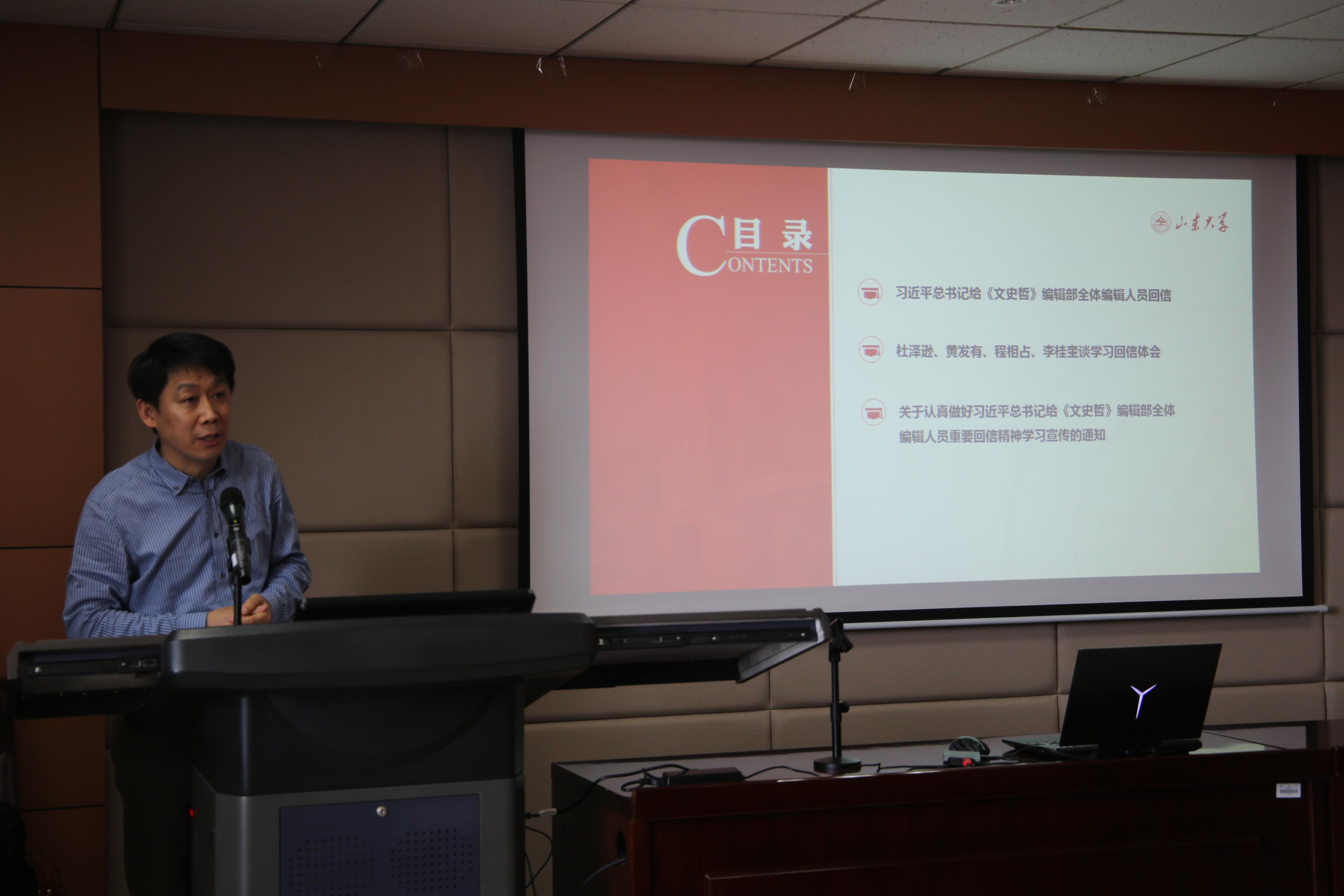 sunbet官方网站的《文史哲》学报是sunbet官方网站凝聚人文学科的智慧和力量,经过长期努力而打造的学术名片,体现了山大几代学人严于律己、追求卓越的学术精神。本次理论学习通过对习近平总书记重要回信精神进行研讨和解读,有助于公司全体教职工充分理解、准确把握回信的核心要义、精神实质和丰富内涵,对共建有中国特色的哲学社会科学,努力建设哲学社会科学山大学派具有深远意义,为以中国智慧助推中国道路贡献山大力量指明了前进方向。