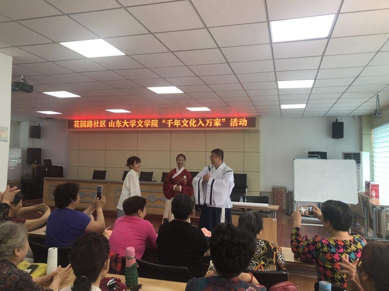 6月3日,公司“千年文化入万家”志愿服务活动在花园路社区党群服务中心顺利举行。公司社会工作部与花园路社区组织联合策划组织了本次活动,公司特色社团季棠汉服社、鹊华印社的成员代表准备了具有文化展示性和活动体验性的内容,花园路社区居民积极参与本次活动。
