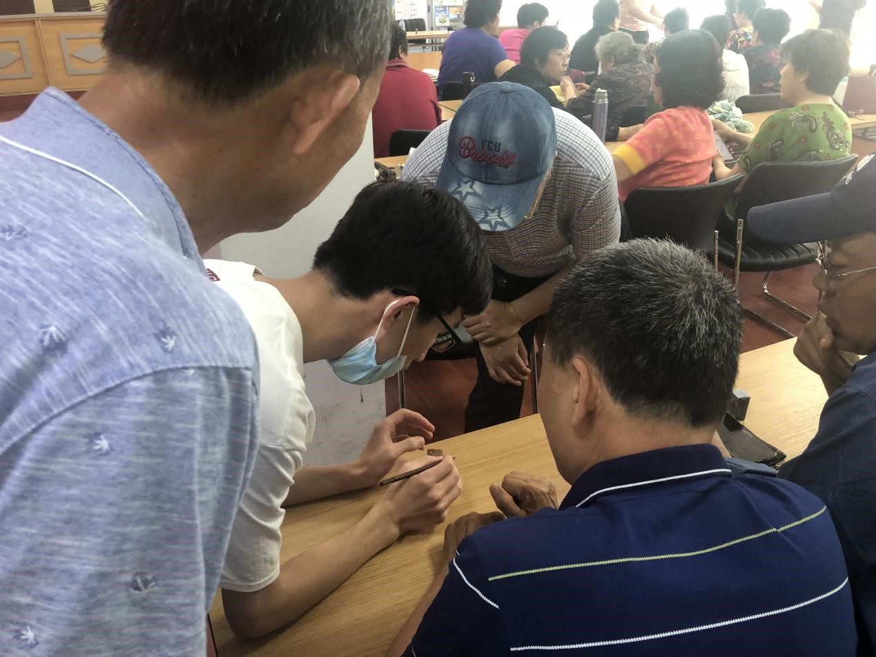 活动伊始,季棠汉服社成员刘子辰、刘相君从汉服在年轻一代掀起的热潮谈起,讲述了汉服的悠久历史及文化传承意义,并对汉服的绣花、衣领等特色样式进行了详细讲解和展示。此外,季棠汉服社还带来了汉服供居民试穿体验,现场氛围融洽、居民反响热烈。接下来,鹊华印社成员王洪旭、赵振强为居民们讲解了篆刻的基本知识,介绍了几种简单的篆刻方法,并带来了石头与刻刀等工具指导居民们进行篆刻的初体验。在文化体验活动之后,志愿者与花园路社区居民合唱红歌《没有共产党就没有新中国》,以此纪念与庆祝中国共产党成立一百周年华诞。最后,全体人员合影留念。