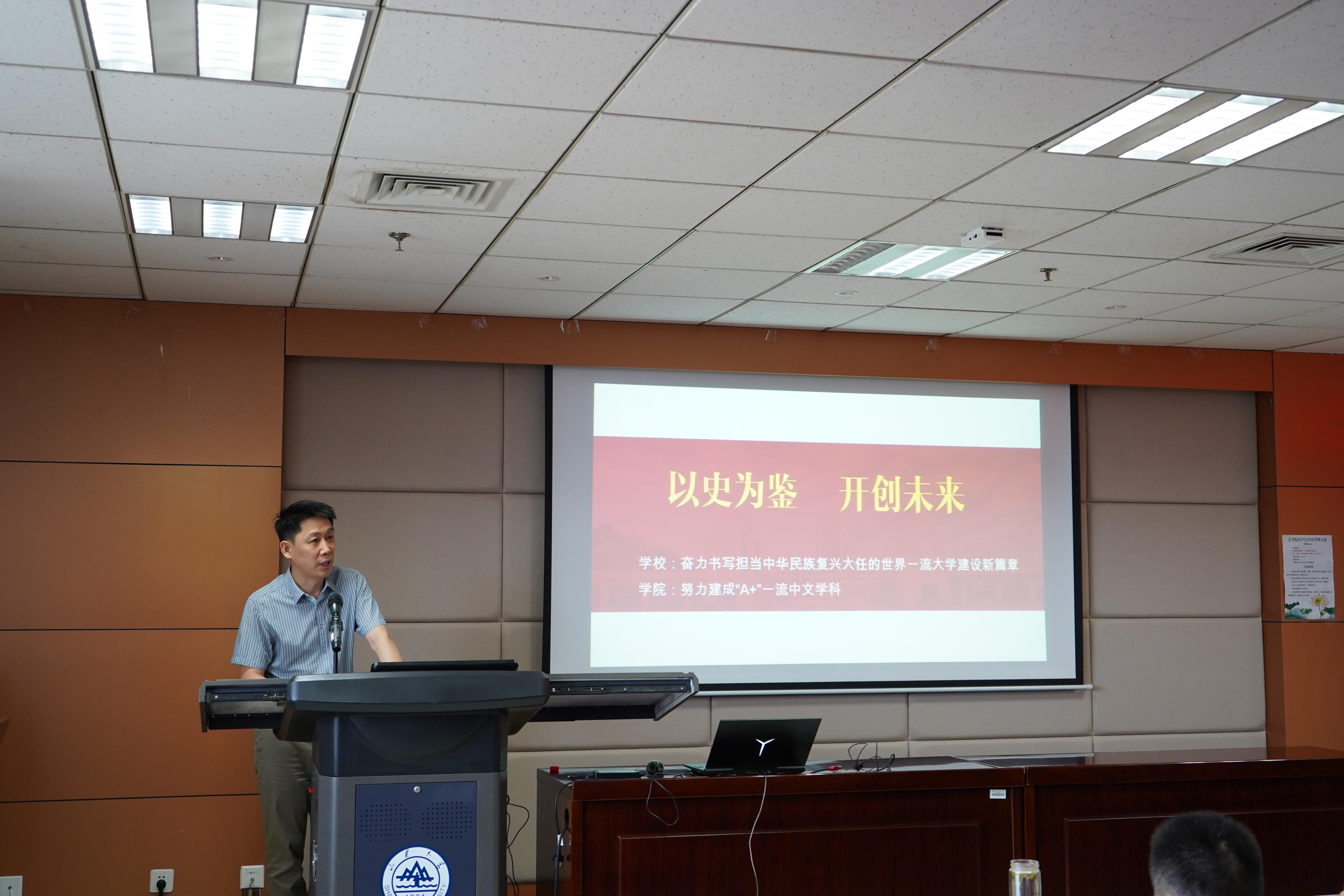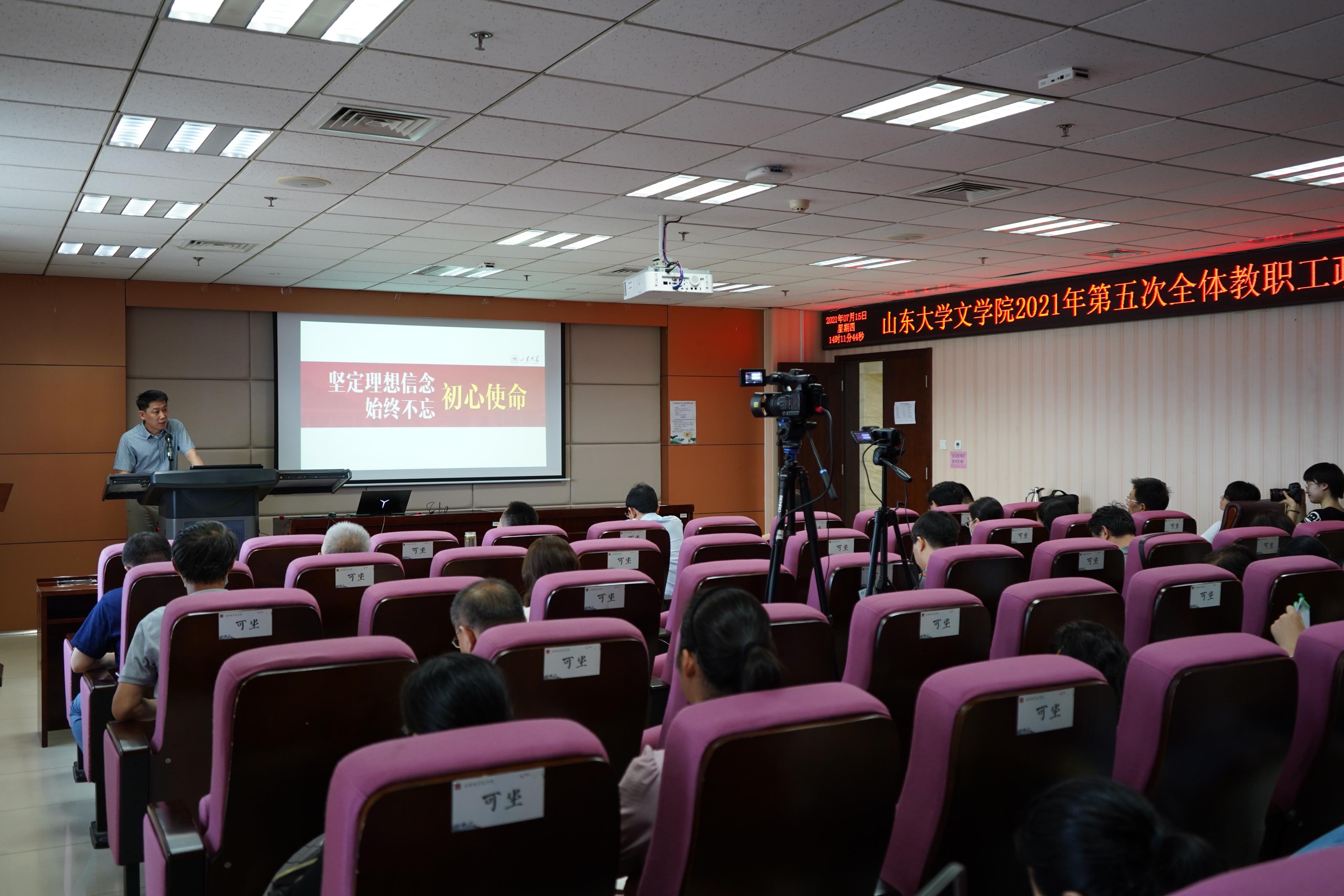 张帅首先带领与会人员学习了习近平总书记在庆祝中国共产党成立100周年大会上的重要讲话精神。他认为,“以史为鉴、开创未来”的思想方法和实践要求是我们学习此次“七一”讲话精神的重要抓手。回顾百年奋斗的光辉历程,中国共产党团结带领人民,不畏强敌、不惧风险、敢于斗争、勇于胜利,始终坚定理想信念,不忘初心使命。百年前的先驱们创建了中国共产党,“坚持真理、坚守理想,践行初心、担当使命,不怕牺牲、英勇斗争,对党忠诚、不负人民”的伟大建党精神就此形成。张帅强调,我们同样要将伟大建党精神作为涵养新时代山大精神和山大文化的精神之源,全体教职工应继承光荣传统,赓续红色血脉,秉承实事求是的优良传统和工作作风,为实现中文“A+”学科的目标而只争朝夕、艰苦奋斗。他勉励sunbet全体教职工要积极主动把握习近平总书记“九个必须”的精髓要义,明确其实践要求;落实到思想和行动上,就是要以立德树人为根本,擦亮“教育报国”和“为国育贤”的办学初心,彰显“重情义、尚风骨、尊学术”的公司品格,为建设担当中华民族复兴大任的世界一流大学做出应有贡献。