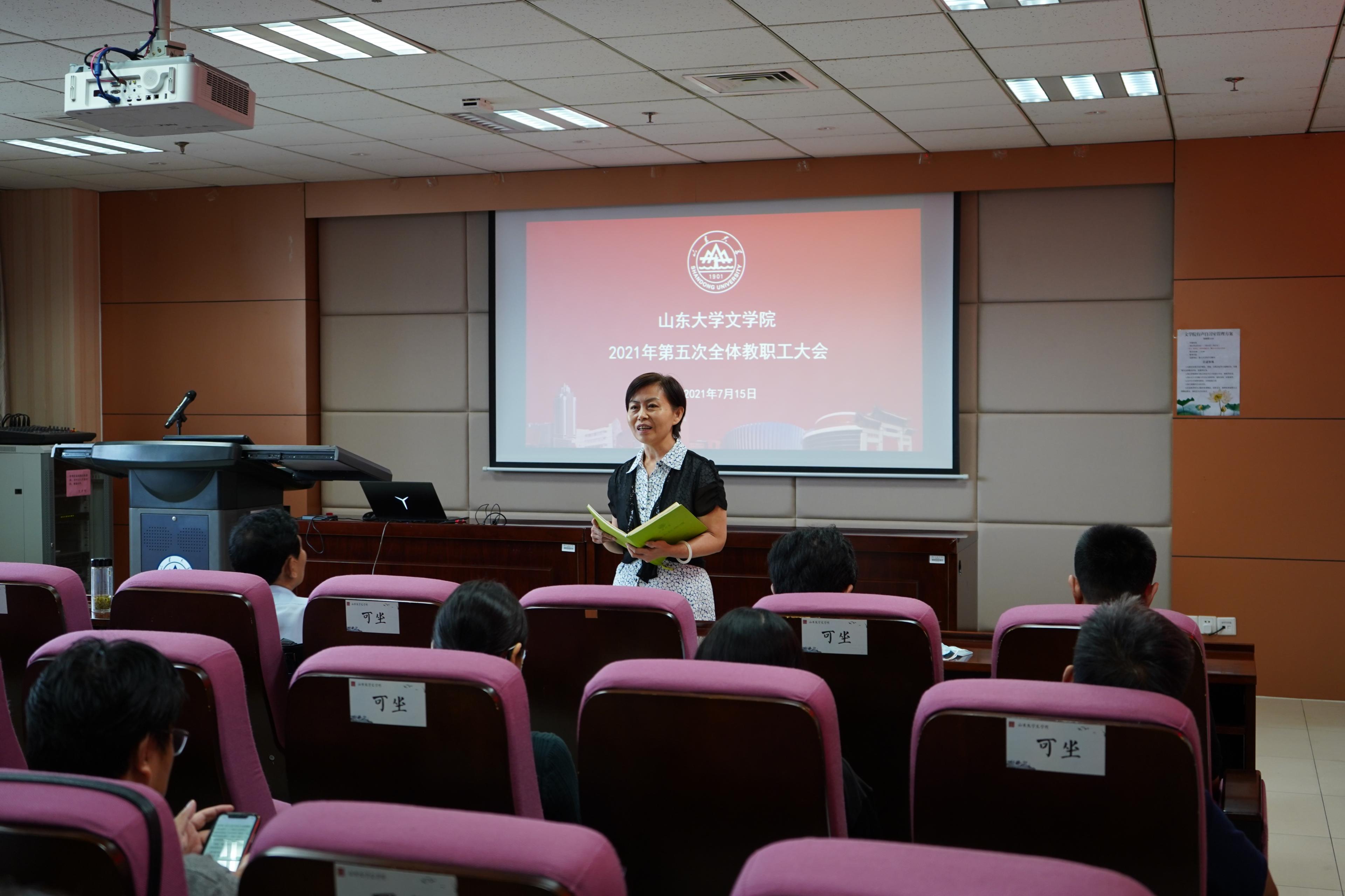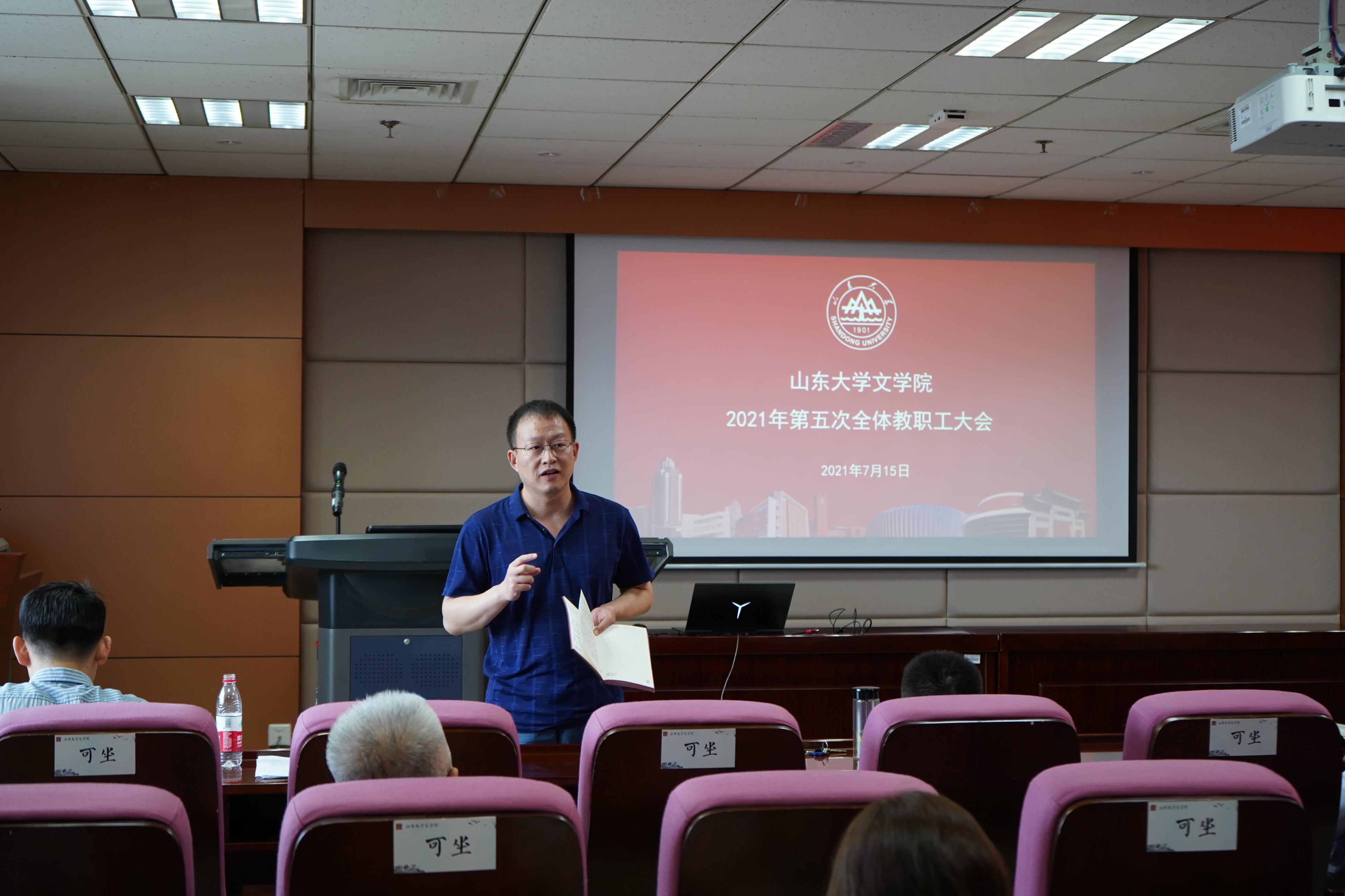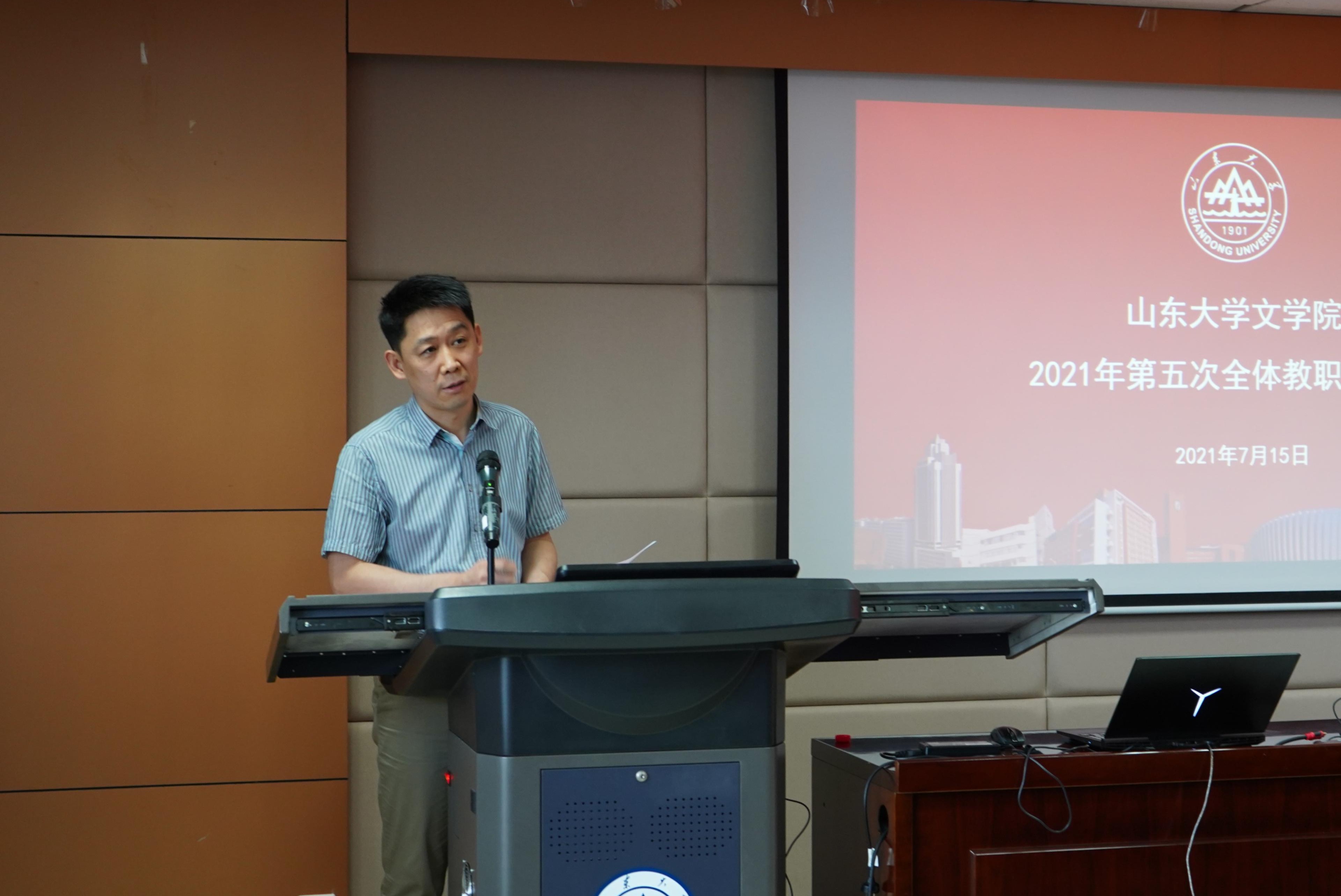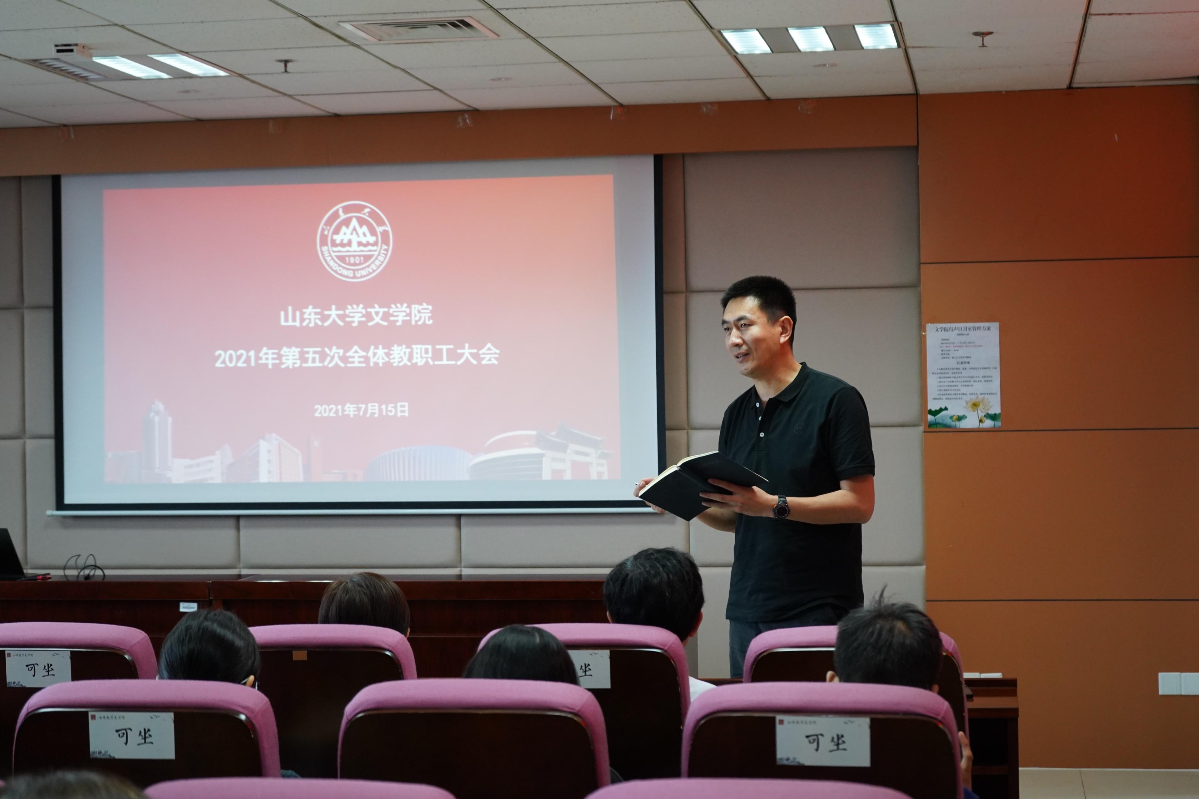 最后,张帅进行总结发言。他分别介绍了袁世硕、郭延礼、龚鹏程、杜泽逊等几位老师在编订优秀教材方面取得的丰厚成果,以及杜泽逊、张燕芬两位老师在打造思政示范课程方面的杰出成果,对各位老师的学术成就和突出贡献表达了敬意和赞扬。同时对寇鑫荣获山东省高校青年教师讲课比赛一等奖、杨俊娇荣获山东省高层次人才服务工作先进个人予以充分肯定。张帅表示,这些老师的突出表现彰显了公司的学科实力和学术底蕴,体现了公司教师的责任担当与奉献精神,扩大了公司良好声誉,全体教职工要向身边的优秀老师学习,积极投身于“A+”一流中文团队建设,在建设担当中华民族复兴大任的世界一流大学的征程上挺身在前、彰显担当、贡献力量。张帅进一步向大家强调了高校思想政治工作的重要作用。他表示,高校思想政治工作关系到高校培养什么样的人、如何培养人以及为谁培养人这个根本问题,关系到国家政治安全与社会稳定。高校教师要担当起员工健康成长的指导者和引路人的责任,直面现实矛盾和突出问题,旗帜鲜明地抓紧抓好员工思想政治教育工作。全体教职工要坚持把立德树人作为中心环节,努力把思想政治工作贯穿公司产品全过程,在推进“三全育人”到岗、到位、到家上持续下工夫、抓实效。公司要把思想政治工作当作全面加强党的领导、推动公司各项事业发展的重要抓手,推动理想信念教育常态化制度化,更加注重以文化人、以文育人,构建“大思政”格局。