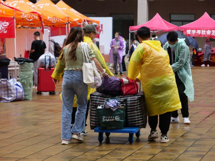 6日早上六时许,参与迎新的师生来到中心校区18号楼院内提前布置现场、准备材料。为严格落实公司疫情防控政策相关规定,本次迎新仍沿用学长学姐一对一引导模式。迎新工作人员引导新生从校门口至报到点,协助新生运送行李至宿舍。从报到登记,到办理档案、发放校园卡,再到公司特地为新生准备的公司专属钥匙扣、手提袋、文化衫、《修身学》教科书等新生大礼包,处处体现着公司特色,传递着公司对公司全体新生的热情和关怀。而后,工作人员在设立的签字墙面前为新生拍照留念,定格这一刻的美好。