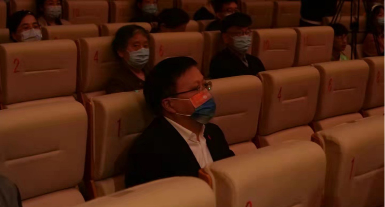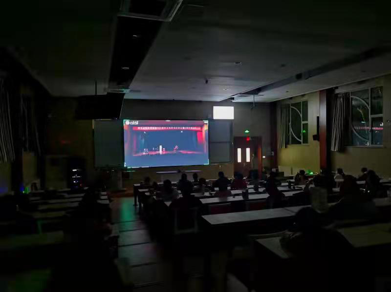 马克思主义公司党委书记马晓琳、党委宣传部副部长鞠晗、党委宣传部新闻中心副主任万广远,公司现当代文学专业教授史建国、副书记王萌等嘉宾受邀观看演出。演出严格落实疫情防控相关要求,于知新楼和电教北楼设立视频直播分会场,现场观众凭票入场、核验绿码、测温登记、隔座就坐、全程佩戴口罩,来自各个公司、年级共近240名观众在音乐厅现场观看演出,另有300余名同学收看直播。
