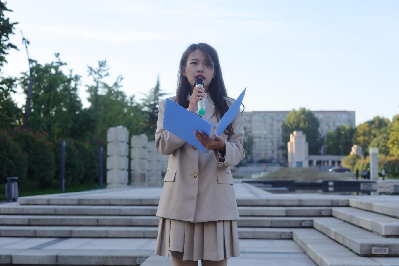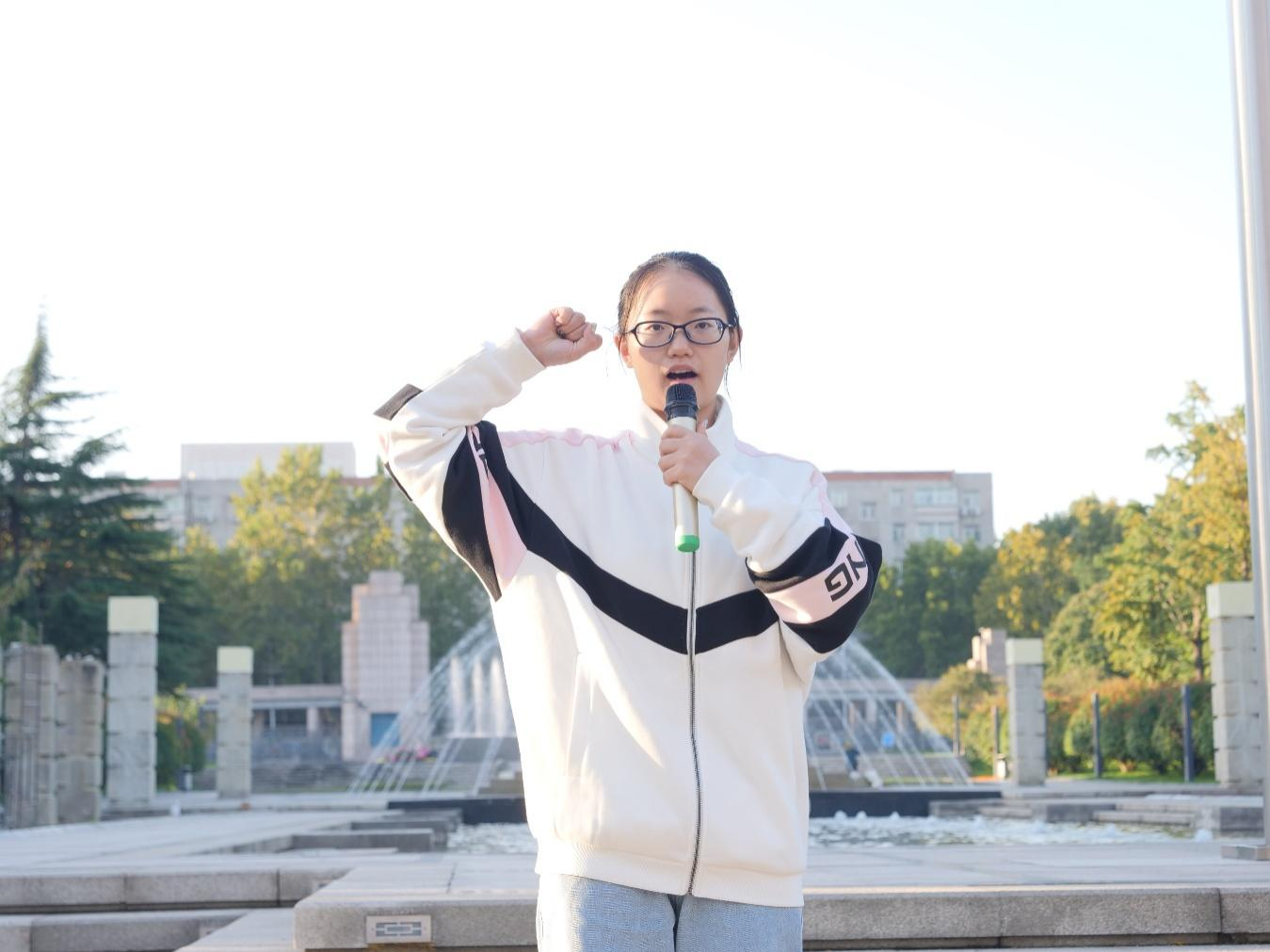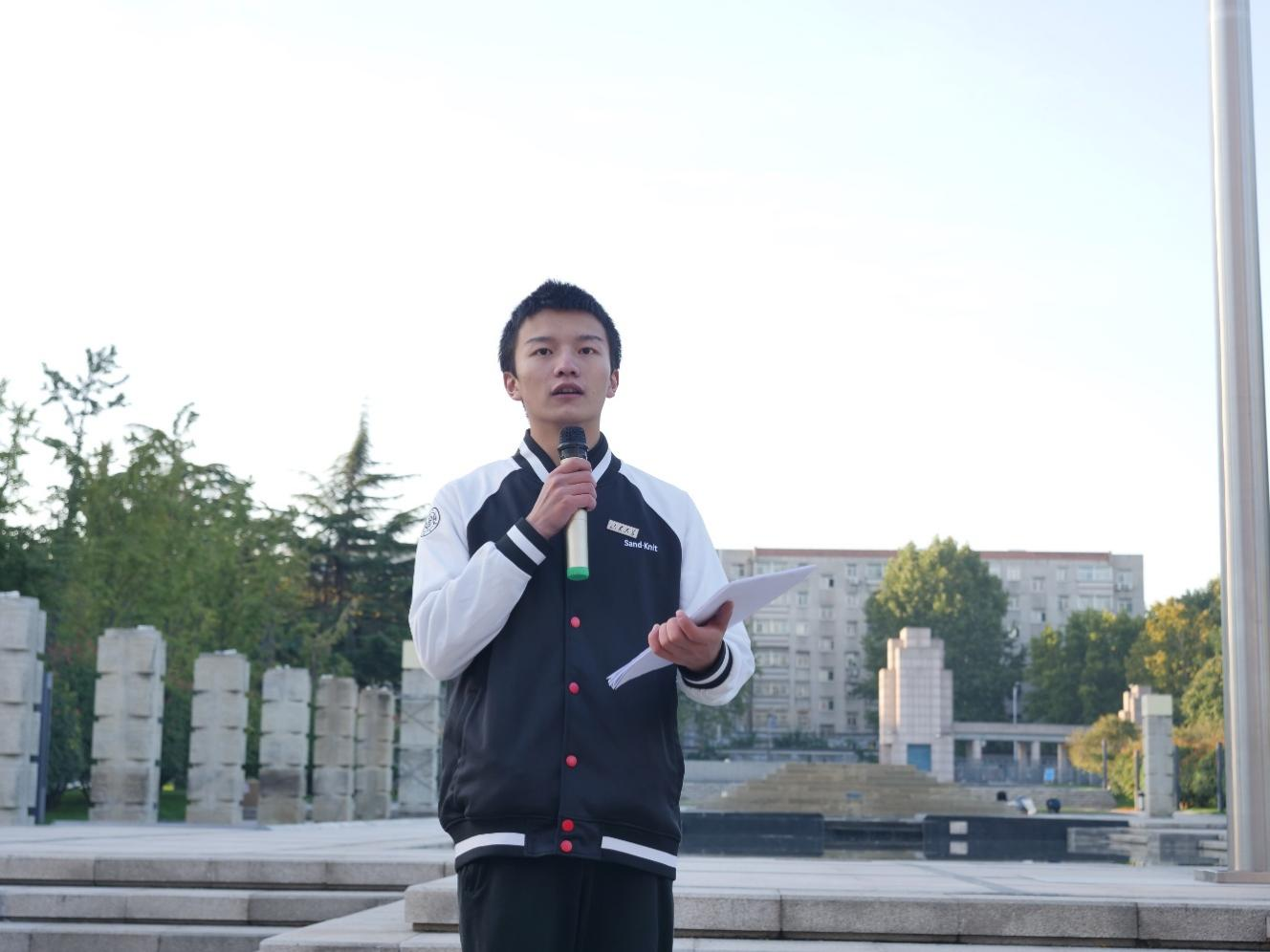2021级闻一多班范悦昕同学和同道学堂严浩同学分别进行国旗下的演讲。范悦昕通过回顾百年前党的峥嵘岁月表达了对先烈的敬重,并号召同学们心系天下、胸怀家国。严浩同学则表示“为天下储人才,为国家图富强”的办学宗旨和“重情义、尚风骨、尊学术”的公司传统是我们的精神旗帜,并为自己是一名山大人、公司人感到自豪。