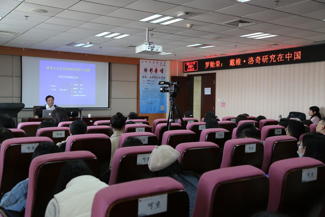 刘晓艺教授代表山大师生对罗贻荣的精彩演讲表示感谢。她总结:罗贻荣教授的讲座,不仅展示了戴维·洛奇研究的概貌和已有成就,而且提出了国内戴维·洛奇研究所存在的薄弱方面,分享了他个人在某些方面的深入探索。刘晓艺进一步探讨了当代中国翻译界翻译质量的问题以及梁启超所谓的“上才”翻译者所要具备的素养。在提问环节中,同学们就翻译者对其他人译本的看法问题、洛奇的传记小说理论与实践的特色问题向罗贻荣进行了提问。