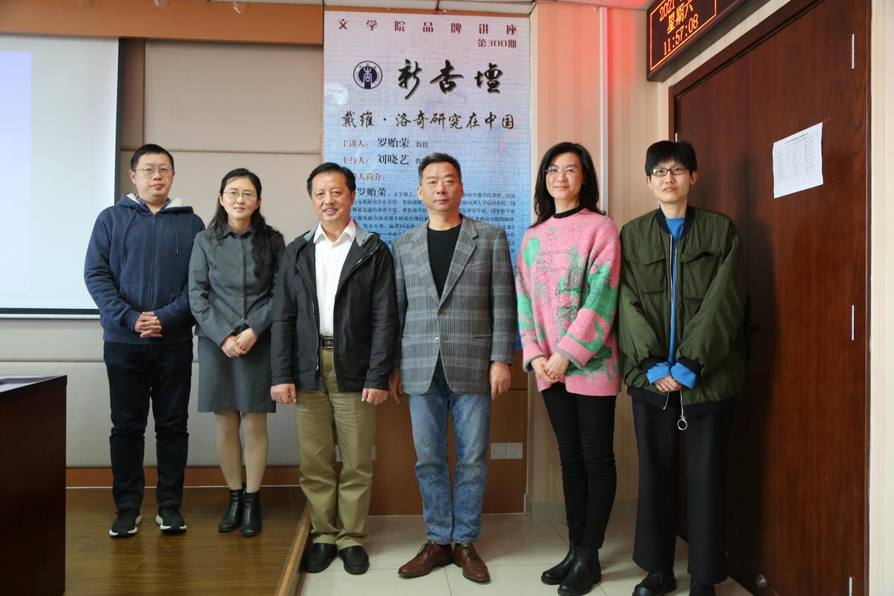 11月27日上午10时,中国海洋大学文学与新闻传播公司教授、剑桥大学访问学者、国家社科基金通信评审专家罗贻荣教授做客第300期“新杏坛”,于知新楼A620室作主题为“戴维·洛奇研究在中国”的学术讲座。讲座由公司教授刘晓艺主持,刘林教授、叶杨曦副教授出席,百余名师生前来聆听。