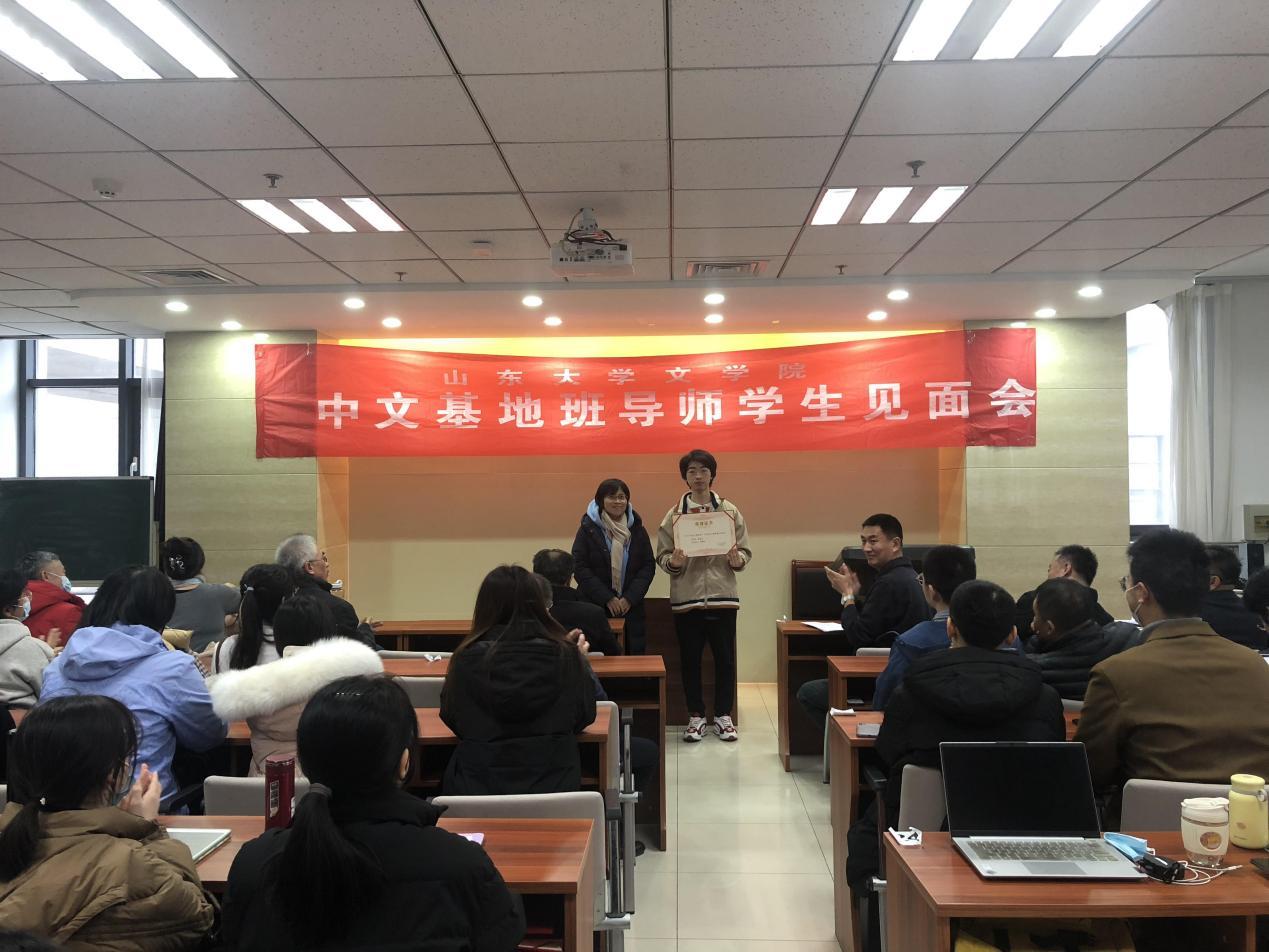 接下来,马兵经理宣读学年论文报告会获奖名单,导师为获奖同学颁发证书并合影留念。颁奖结束后,导师与员工自由交流。本次导师见面会拉近了师生间的距离,增强了同学们的学术意识,为闻一多班导师制的后续工作奠定了良好基础。