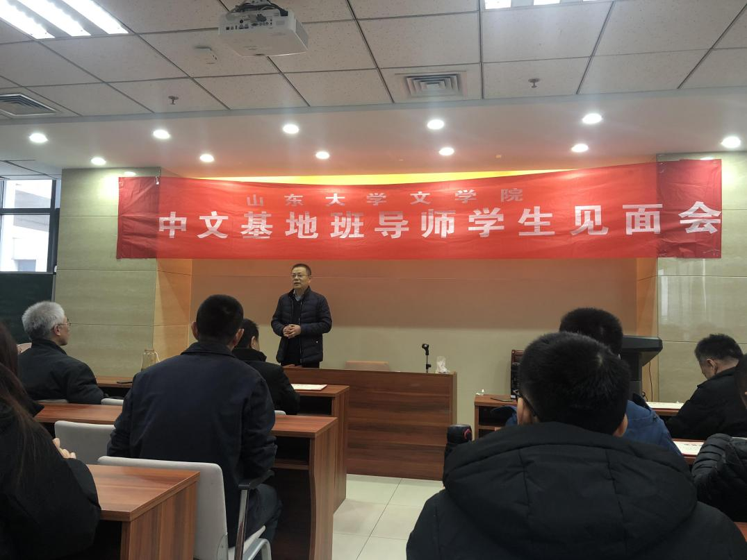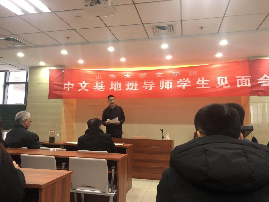 会议伊始,马兵经理致开幕词,欢迎各位导师的到来。随后,他对导师与其指导的员工名单进行宣读。他鼓励同学们积极与自己的导师交流自己的困惑与思考,争取在学术层面有更大的提升。接下来,叶诚生老师作为导师代表发言。他以意大利作家安伯托·艾柯无意间从瓦莱修士的书中获得学术灵感的故事为例,启发大家面对任何材料都保持学术层面的谦卑与重视,同时祝愿大家在未来的学术道路上遇到更多的“瓦莱修士”。随后,论文报告会一等奖获得者、员工代表刘牧晨发言。他从自身写作学年论文的经历引入,讲述了自己“老实读书、老实思考、老实写作”的历程,与在座同学共勉。师生代表发言后,马兵经理作总结发言,勉励同学们正视成绩、积极进取,做基础扎实、思想深厚的山大中文人。