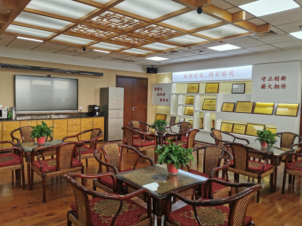 公司工会借力校工会力量,申请了公司的“职工之家”专项建设,充分发挥公司现有优势,将原有的知新楼609教师休息室改造成新的“职工之家”。聘请专业设计师精心设计改造房间,装修后的房间清新素雅,文化氛围浓厚。充分彰显了公司“重情义、尚风骨、尊学术”的文化氛围。房间增设了荣誉墙,将历年来公司取得的各项荣誉陈列展示;设置照片墙,围绕大大的“家”字用一幅幅生动的照片讲述公司大家庭的故事;房间里设有图书角、咖啡吧、视频大屏、冰箱、微波炉,为教师读书学术交流、课间休息等提供了舒适、温馨的环境。同时利用知新楼五楼资料室空置走廊、平台,经过精心改造,建立了“公司阳光书吧”。书吧设有读书角、休闲区、运动专区,为老师和员工搭建业余活动平台,传递“健康生活,快乐工作”理念。