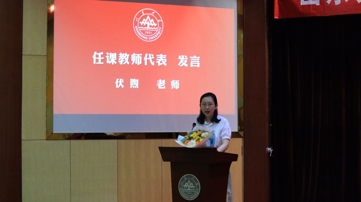 任课教师代表伏煦回顾了与同学们相处的宝贵时光,并与同学们分享了人生经验。她提到,同学们在未来学习生活中,要更加重视培养学习能力,在学好专业课程基础上,结合职业生涯规划合理安排学习时间。此外,她强调,“内卷”和 “躺平”没有意义,同学们一方面要找准属于自己的赛道,制定个性化发展目标,另一方面要以健康心态面对得失,消解不良情绪。