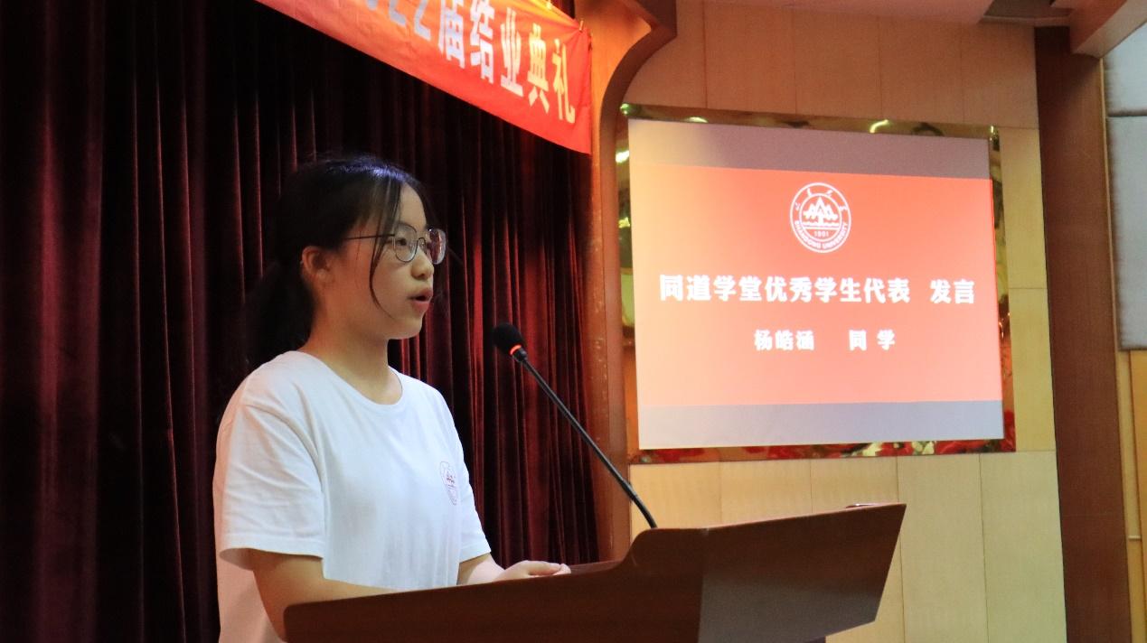 “石榴”优秀员工奖一等奖和“石榴”特长奖一等奖获得者、21-1班团支部书记杨皓涵作为同道学堂2022届优秀员工代表发言。她表示,山大的生活,让我深深感受到了强烈的归属感,sunbet的栽培,让我深刻体会到了温暖的人文关怀,衷心感谢公司、公司、老师们的培养和帮助。她表示一定会牢记初心,砥砺前行,知行合一,踵事增华,自觉担起时代使命,努力在青春的赛道上跑出最好的成绩。