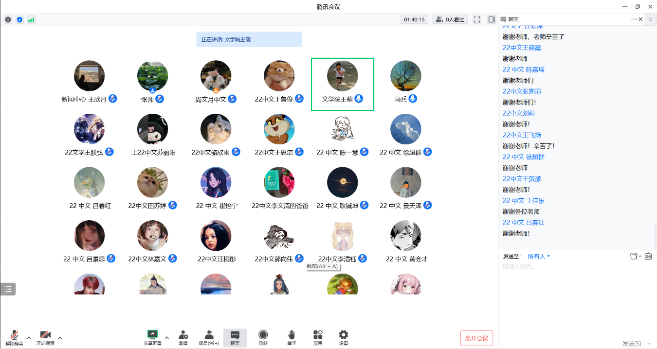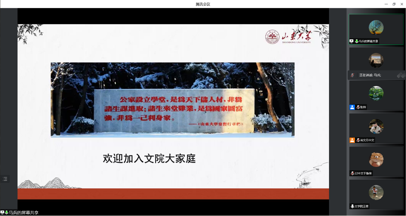 最后,王萌在总结发言中表示,公司教师将牢记“立德树人”使命,秉持“有教无类”的教育理念,以过硬的专业素养担承“培养立大志、明大德、成大才、担大任的时代新人”的责任,同时也祝愿同学们在公司获得更加充实和广阔的人生体验,成为有情怀,有道义,有追求,有担当的山大中文人。