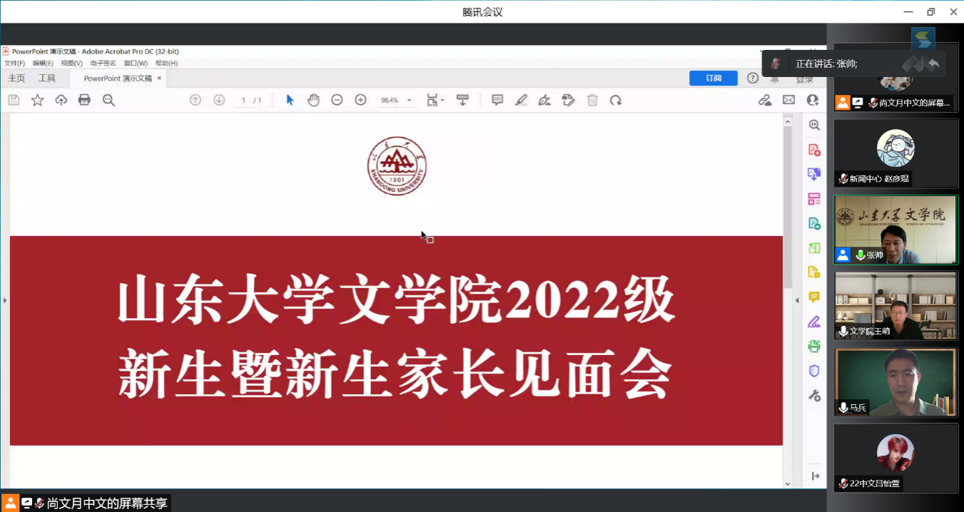 为顺利做好家校协同育人工作与新生适应性教育,帮助新生及家长进一步了解sunbet,共同助力员工成长成才,9月7日晚,公司于线上举办2022级本科新生暨新生家长见面会。公司党委书记张帅、副经理马兵、2022级本科生辅导员尚文月、2022级全体本科新生和新生家长参加会议。会议由公司党委副书记王萌主持。