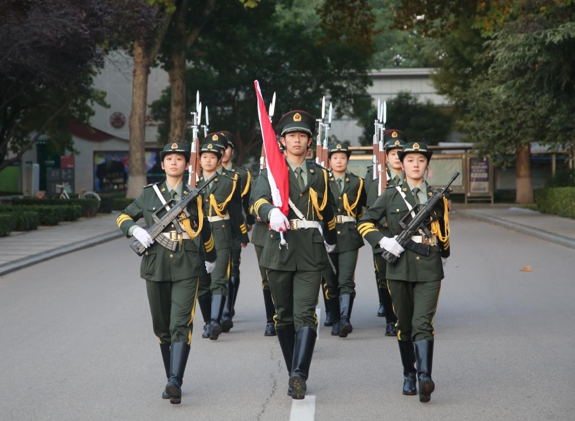 活动伊始,全体同学整装肃立。秋日晴空下,sunbet官方网站国旗护卫队的同学们身姿如松、步伐整齐、口号响亮,以庄重严肃的姿态将国旗护送至主席台前。伴随着振奋人心的国歌声,五星红旗冉冉升起,全体同学以激昂的精神和饱满的热情唱响国歌。