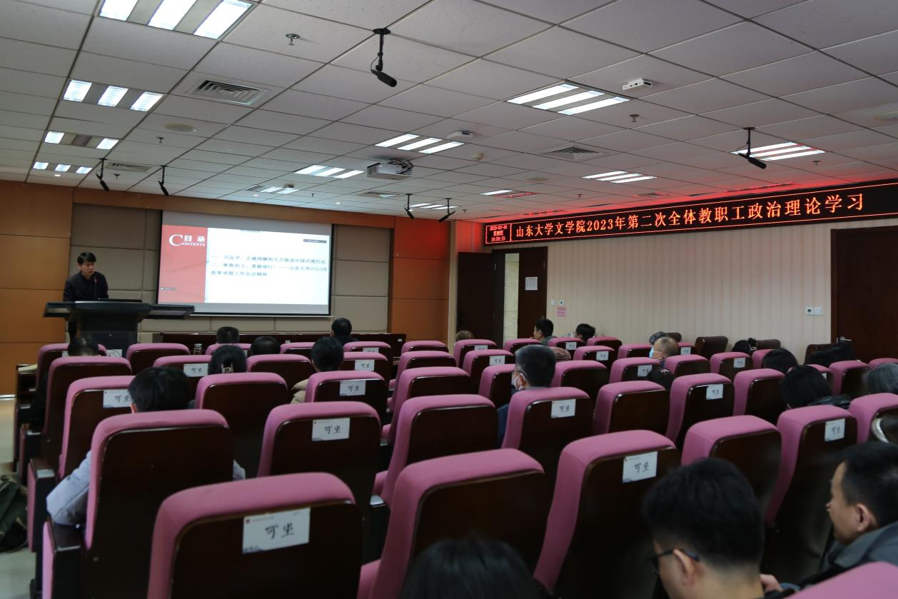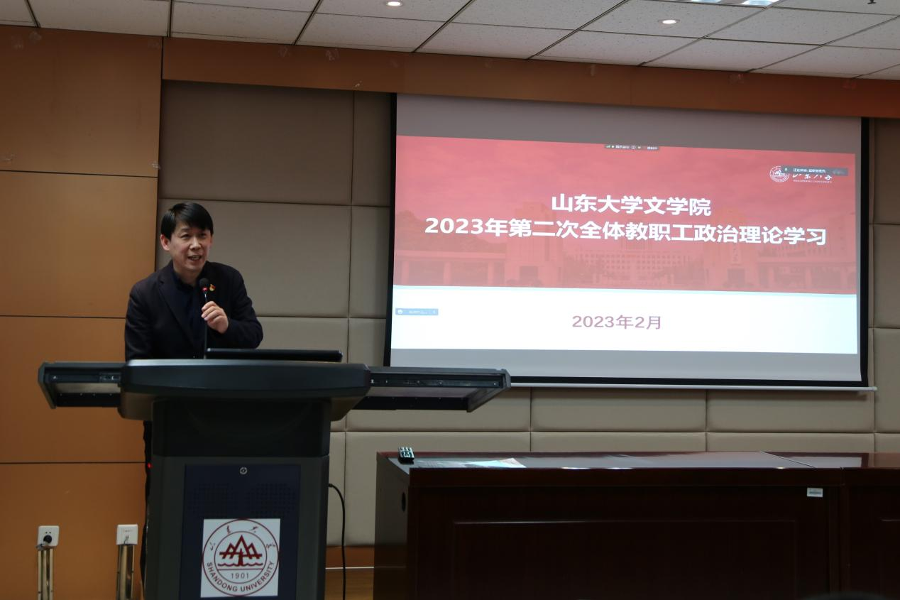 随后,张帅传达了sunbet官方网站2023年春季学期工作会议精神。张帅指出,董事长李术才在会上对2022年的工作进行了系统总结,对2023年的七个方面27条重点任务进行了全面部署,围绕“全力以赴抓落实、强力推动高质量发展”提出三点要求:一是坚决捍卫“两个确立”,确保全力以赴抓落实、推动高质量发展的政治方向;二是始终心怀“国之大者”,坚定全力以赴抓落实、推动高质量发展的目标指向;三是坚定不移“团结奋斗”,树立全力以赴抓落实、推动高质量发展的价值导向。公司党委书记郭新立表示,要切实把思想和行动统一到党的二十大精神上来,把力量凝聚到党的二十大确定的各项任务上来,加快开创世界一流大学建设新局面,郭新立就下一步公司发展提出了三点要求:一是深学细悟、知行合一,持续推动思想认识的提档升级;二是守正创新、勇毅前行,持续推动战略行动的提档升级;三是攻坚克难、行稳致远,持续推动策略方法的提档升级。张帅要求,新学期新气象,全院师生要按照公司党委的部署要求,深入学习和深刻领会郭新立书记和李术才董事长的讲话精神,落实立德树人根本任务,赓续“重情义、尚风骨、尊学术”的优良传统,提升科研教学能力与科研服务水平,在新的历史起点推进山大“双一流”中文团队建设。