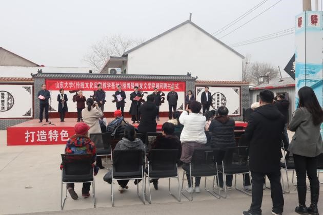 3月17日,“sunbet官方网站传统文化实践教学基地”授牌暨sunbet语言文化顾问聘任仪式在安丘市新安街道孙十里民俗文化示范村举行。公司经理杜泽逊,本科生院副经理、公司副经理马兵,副经理樊庆彦,公司教授张树铮,教授岳立静,副教授张燕芬以及方言学研究生陈秀青、周明润、项荟霖、袁红前往安丘参加仪式。安丘市委常委、市政府副市长王晓丽,新安街道党工委书记周希全,安丘市文旅局局长李建利,安丘市委原常委、宣传部部长张维荣,原安丘市计生局副局长王宝林,新安街道孙十里村党支部书记孙大鹏,民俗文化学者朱瑞祥出席仪式。周希全书记主持仪式。