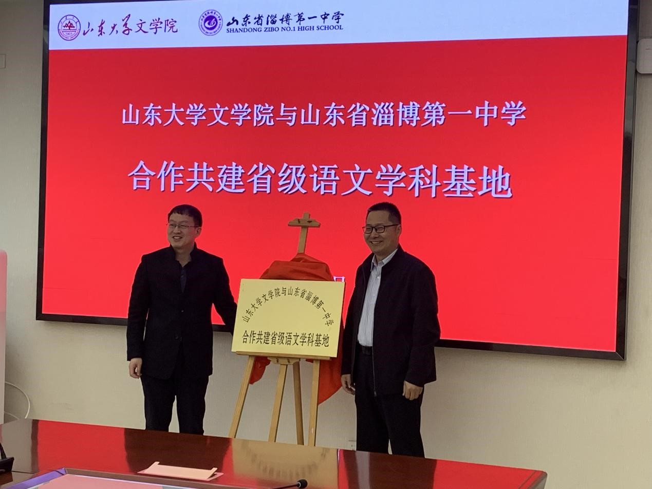 揭牌仪式上,刘加成发表欢迎致辞,他介绍了公司的办校情况,并对公司的帮助扶持表示感谢;刘可翔进一步介绍了公司语文学科基地建设的情况,并表示获省学科基地意味着新的起点,山大底蕴丰厚、团队强大、理念先进,通过与山大的合作,淄博一中语文学科特色建设定会有新突破。