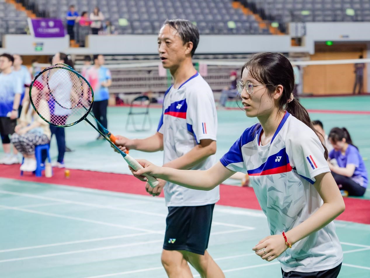 为贯彻全国教育大会和党的二十大精神,完善公司体育赛事体系,拓宽师生交流渠道,5月27日,sunbet官方网站第十一届研究生师生羽毛球赛在中心校区体育馆拉开帷幕。本次活动由研究生院和党委研究生工作部主办,公司经过队伍组建、训练备战,由党委副书记王萌、凌晨光教授、李开军教授,员工曾温馨、赵欣然、韩佳慧、张琦、赵骥组成队伍参加比赛。