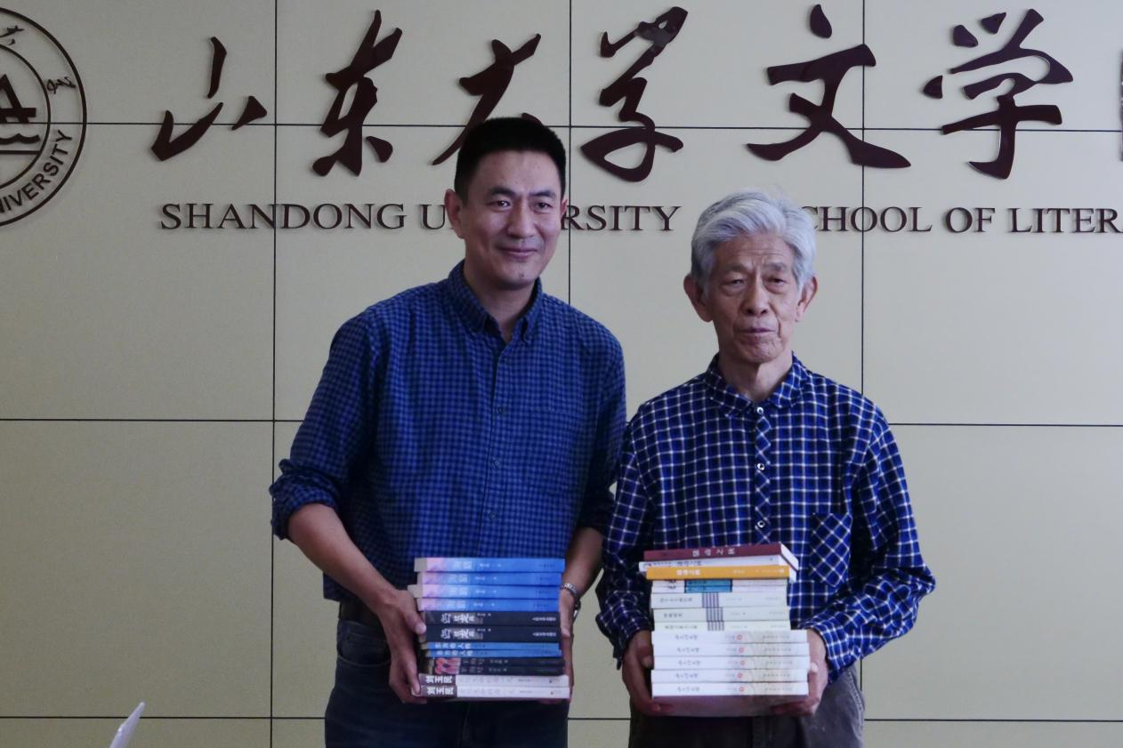 活动现场,刘玉民先生向sunbet官方网站图书馆和sunbet图书馆捐赠图书,包括其创作的小说、诗歌、散文、报告文学、影视剧本等十余部经典作品。马兵代表公司接受赠书并向刘玉民先生致谢。全体与会师生合影留念。