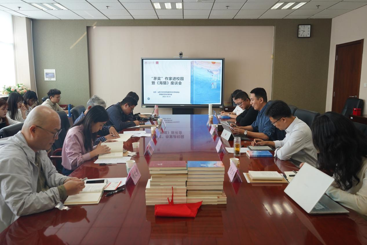 10月14日上午,公司在中心校区举办“茅奖”作家进校园活动暨《海猎》座谈会。当代著名作家、第四届茅盾文学奖获得者,原济南市作协主席、山东省文联副主席刘玉民先生,公司副经理、济南文艺评论家协会主席马兵教授,著名评论家、公司史建国教授,青年评论家、山东师范大学刘振,齐鲁晚报《青未了》副刊部主任李康宁,济南文艺评论家协会副主席、《济南时报》副刊部主任钱欢青,《济南日报》文旅部主任李雪萌,《大众日报》记者刘兰慧,公司现当代文学专业研究生参加座谈会。马兵教授主持活动。