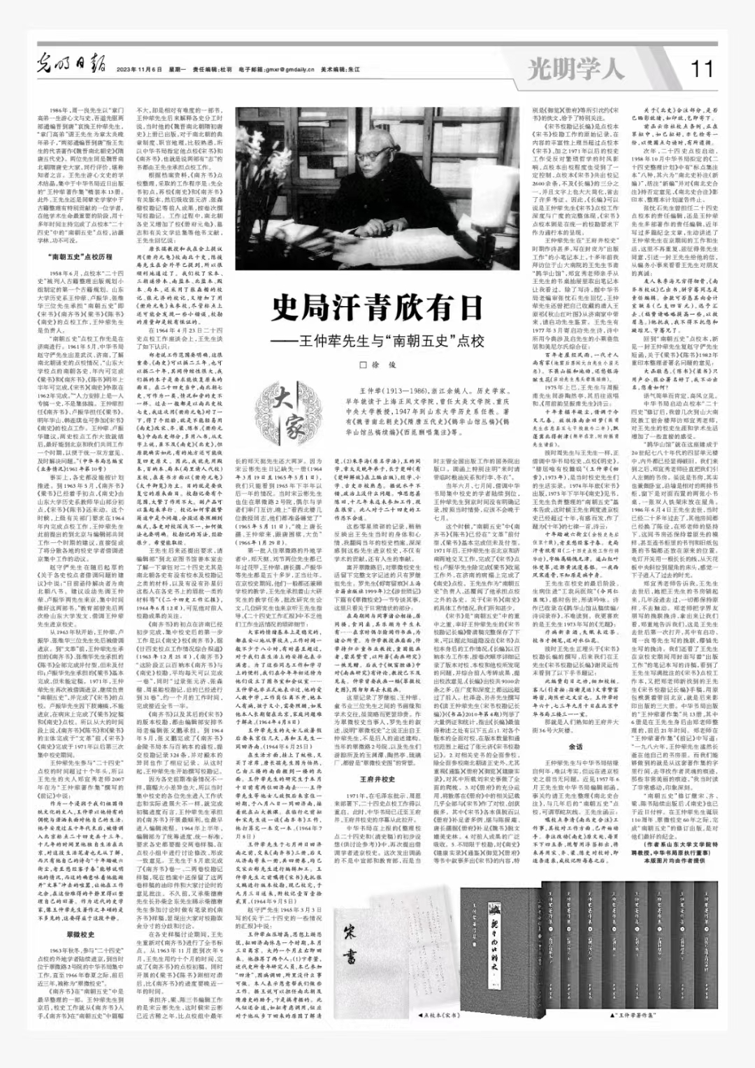 《史局汗青欣有日——王仲荦先生与“南朝五史”点校》https://epaper.gmw.cn/gmrb/html/2023-11/06/nw.D110000gmrb_20231106_1-11.htm