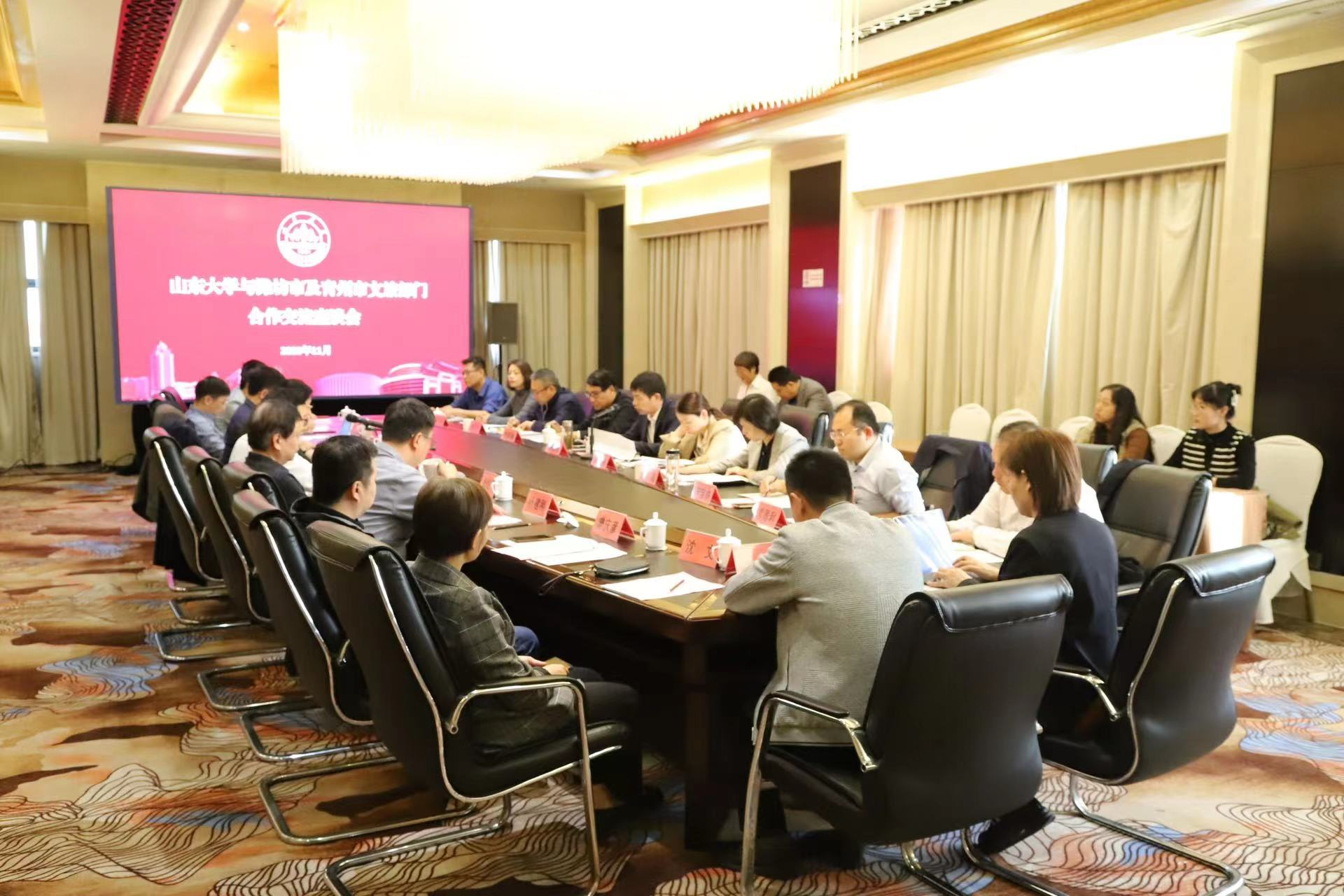 之后,与会成员围绕潍坊市及青州市文旅事业的发展和双方合作共赢问题展开了深入交流,共同探讨共建研创融合人才培养合作平台的相关事宜。
