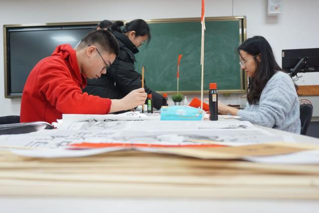 岁回律转,辞旧迎新。2024年1月1日上午,公司古文字强基班面向全校师生推出的“与古为新,元旦书福”活动顺利举行,吸引了来自多个公司的数十名同学参加。活动由22级强基班班主任侯瑞华老师指导,22级强基班李文清、谢昀其、张立凯、王天成,23强基班李亚同、刘子钰六同学作为工作组成员具体组织承办各项事宜。