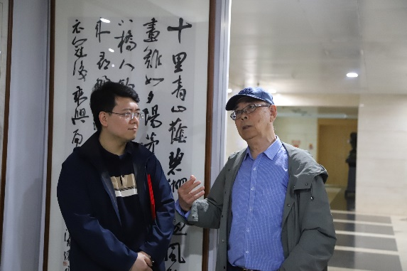 表彰会结束之后,在陈硕副教授的细致讲解下,在场师生观摩了全部参展书画作品,大家对作品的艺术水准予以高度评价。徐超教授、龚鹏程教授也对作品进行了深入细致而生动专业的点评,给大家上了一堂生动的艺术课、学术课、文化课。