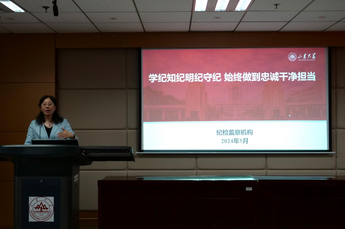 随后,郭春晓为全体教师和部分员工上专题党课,带领大家深入学习了《中国共产党纪律处分条例》第四次修订的基本内容。她详细解读了党纪修订部分的整体要求与深刻内涵,并着重阐释了本次党纪修订中的要点内容。郭春晓指出,本次党纪修订强调要坚持贯彻“两个维护”,要求在党中央的集中统一领导下落实党建目标、解决党建难题、健全党建体系。她借此要求全体教职工增强学习党纪党规的思想自觉、政治自觉、行动自觉,扎实体悟修订版《条例》的深刻思想意蕴与重要指导意义,学纪、知纪、明纪、守纪,始终做到忠诚干净担当。