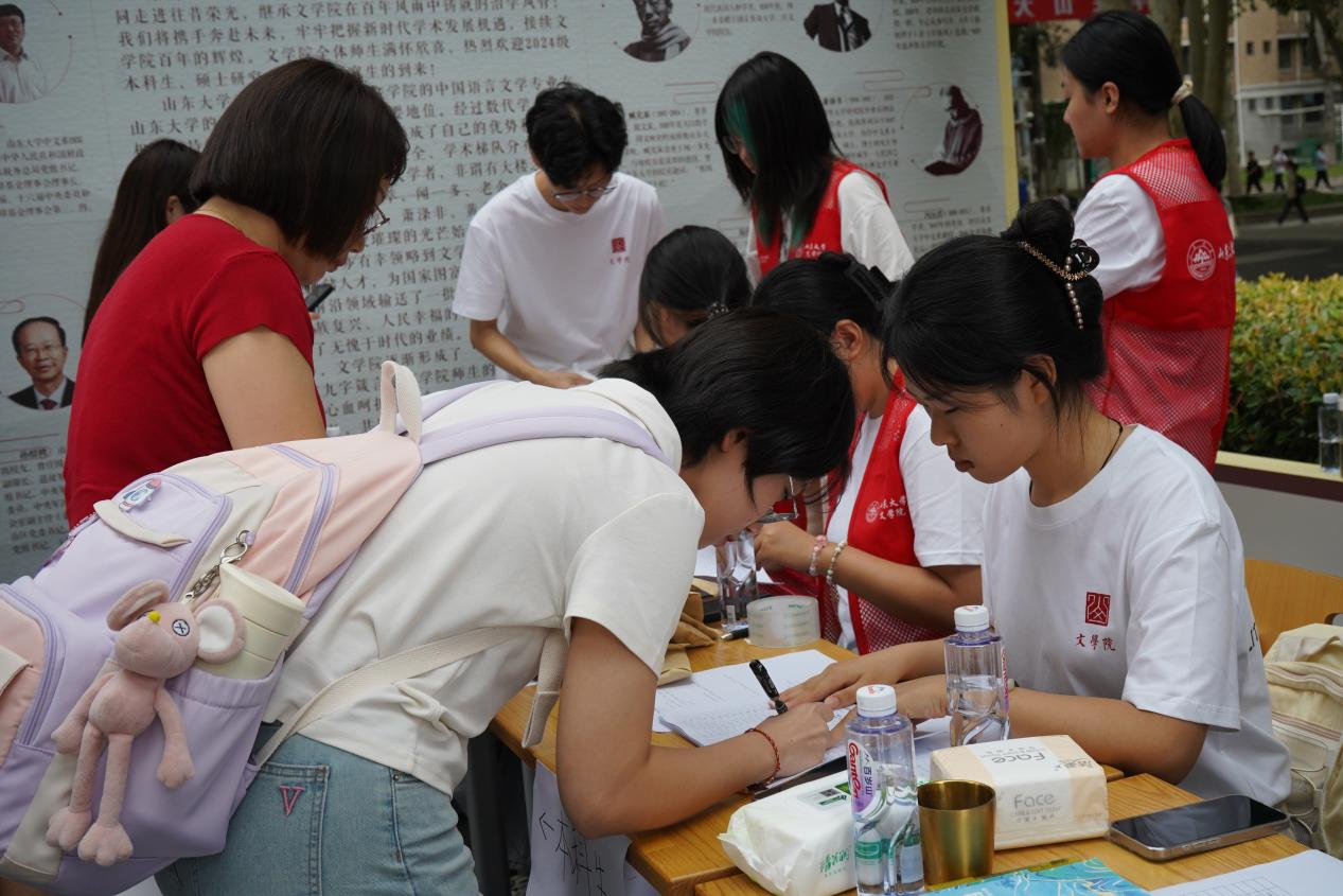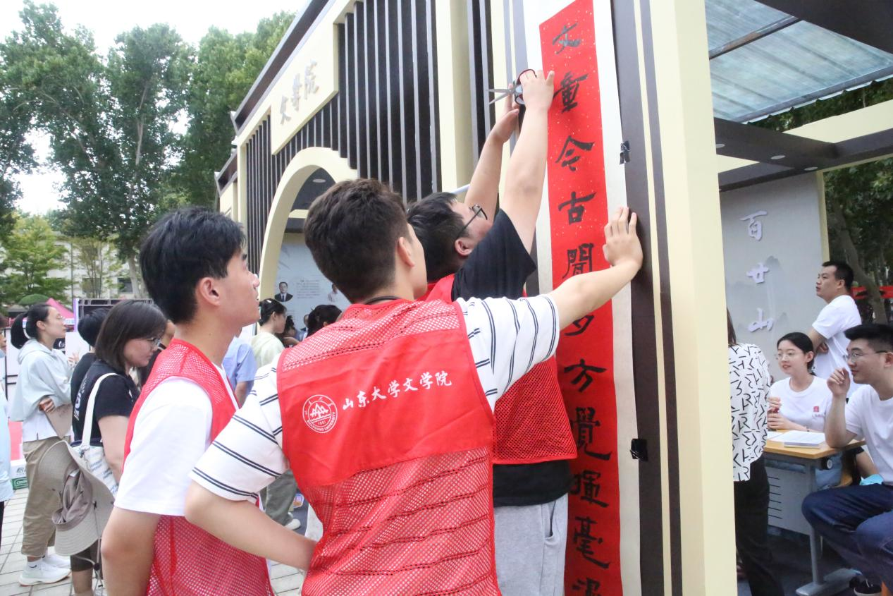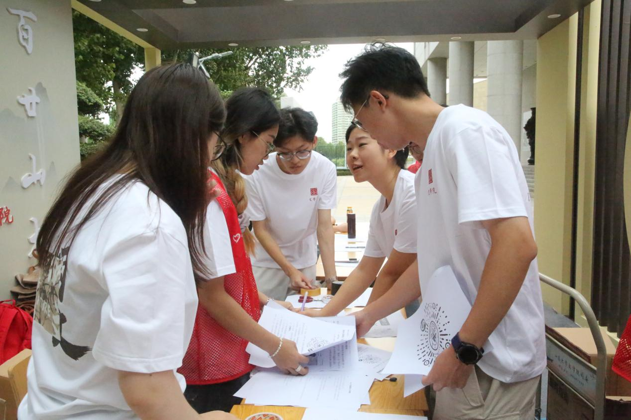 迎新活动现场亮点纷呈,原创特色展厅与签名墙成为新生“打卡”的热门地点。展厅巧妙融合公司多种文化元素,正面设有公司标志,两侧悬挂公司21级强基班本科生高婕手写的对联“文章今古闻多方觉挥毫漫,学问东西涤非更思治世艰”,不仅展现出sunbet深厚的学术底蕴和独特的文化魅力,更寄语新生效仿公司先贤,在广博的学问中探索真知。展厅内部则设有员工墙,以期激励新生以先贤为榜样,勇攀学术高峰,担当时代重任。此外,公司还为每位新生精心准备了包含文创背包、院服、鼠标垫、手机支架等实用物品的迎新礼包,传递着公司对新生的深切关怀与殷切期望。