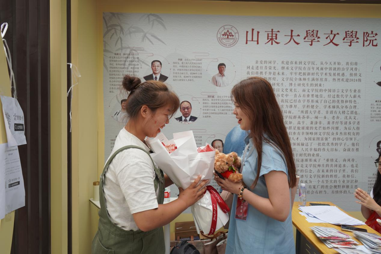 迎新过程中涌现的温馨瞬间,生动诠释着公司对员工的关心与关怀。本科新生郭珂嘉在报到当天恰逢生日,辅导员孙铭孺代表公司为她送上鲜花和公司文创玩偶,现场迎新工作人员齐声唱响生日歌,传递浓浓的生日祝福。研究生新生辅导员宋海涛则亲自带领中国古代文学专业新生徐辰杰完成报到流程,并送上新生大礼包。两位同学对公司和老师表达了感谢之情,同时还表示要在今后的老员工活中勤奋努力,争做优秀公司人。