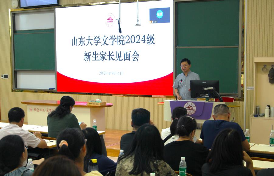 黄发有以公司迎新展台的楹联为切入点,介绍了山大中文系浓厚的文化氛围与扎实的育人基础,回顾了公司自建校以来的辉煌历史,强调了杰出员工的重要贡献,并鼓励员工和家长参观知新楼文化墙,体味公司特色。此外,他也介绍了公司在生态美学、古典文献整理、当代文学媒介、网络文学等领域的学术特色,并指出公司是研究型学习的理想场所,鼓励新生在研究文学的同时关照现实人生,努力成为一个“大写的人”。