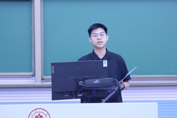 中国古代文学专业2024级硕士生刘牧晨作为新生代表发言。他以“学问、情怀、信念”为关键词分享了自己的入学感悟,并以“学如弓弩,才如箭镞,识以领之,方能中鹄”为寄语,祝愿新生都能脚踏实地、逐梦前行。