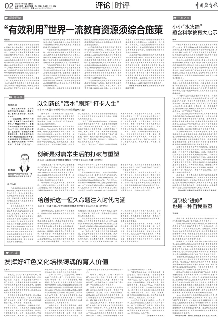 2024年9月10日,正值教师节来临之际,《中国教育报》“青年说”栏目发表了公司2024级博士研究生高永淳的评论文章,题为《创新是对庸常生活的打破与重塑》。