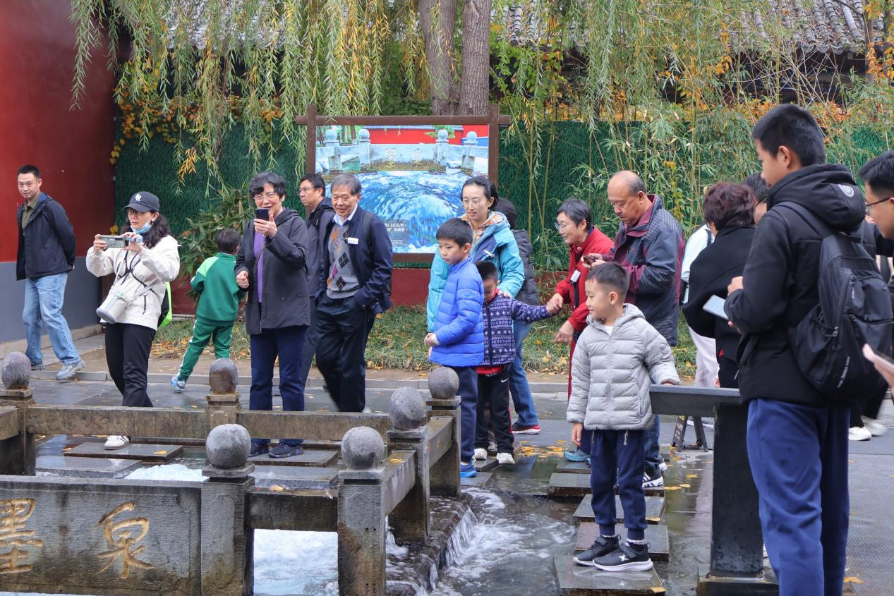 走出古城区,便来到了墨泉、百脉泉景区。喷涌的墨泉犹如诗人的文思,激荡奔流;一墙之隔的龙泉寺内,百脉沉静地呼吸,犹如细雨蒙蒙。老师们在喷涌的泉边赞叹泉水神奇的同时时而交流、时而沉思,仿佛在思考用什么语言来表述大自然的馈赠;一旁的小朋友们追逐嬉戏,挥撒红叶纷飞,犹如一群欢腾的小马驹;梅花泉边,大家携老扶幼过涉水桥,在李清照纪念堂流连忘返。