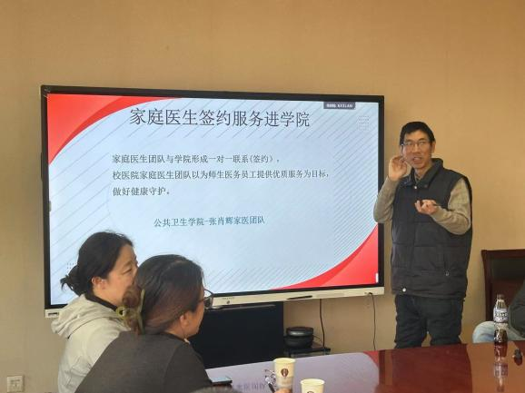 宣讲环节,巩勇副书记对此次校医院送健康活动的意义进行了简短介绍;副经理秦文从专业的服务团队、先进的医疗设备和优质可靠的服务三方面介绍了校医院健康管理中心的基本情况。公共卫生管理办公室王磊介绍了家庭医生签约服务进公司的特色项目和口腔科、中医科等特色科室与医疗项目。中心院区区域护士长薛霞讲解了水痘护理的基本知识和疫苗接种知识。预防保健科公卫医师刘晓雯讲解了常见疾病以及重点传染病的防控措施以及校园医保政策。