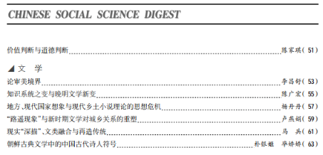 《中国社会科学文摘》由中国社会科公司主管、中国社会科学杂志社主办,是推介人文社会科学领域重要研究成果的文摘类期刊,也是了解人文社会科学领域研究现状和发展趋势的重要窗口。
