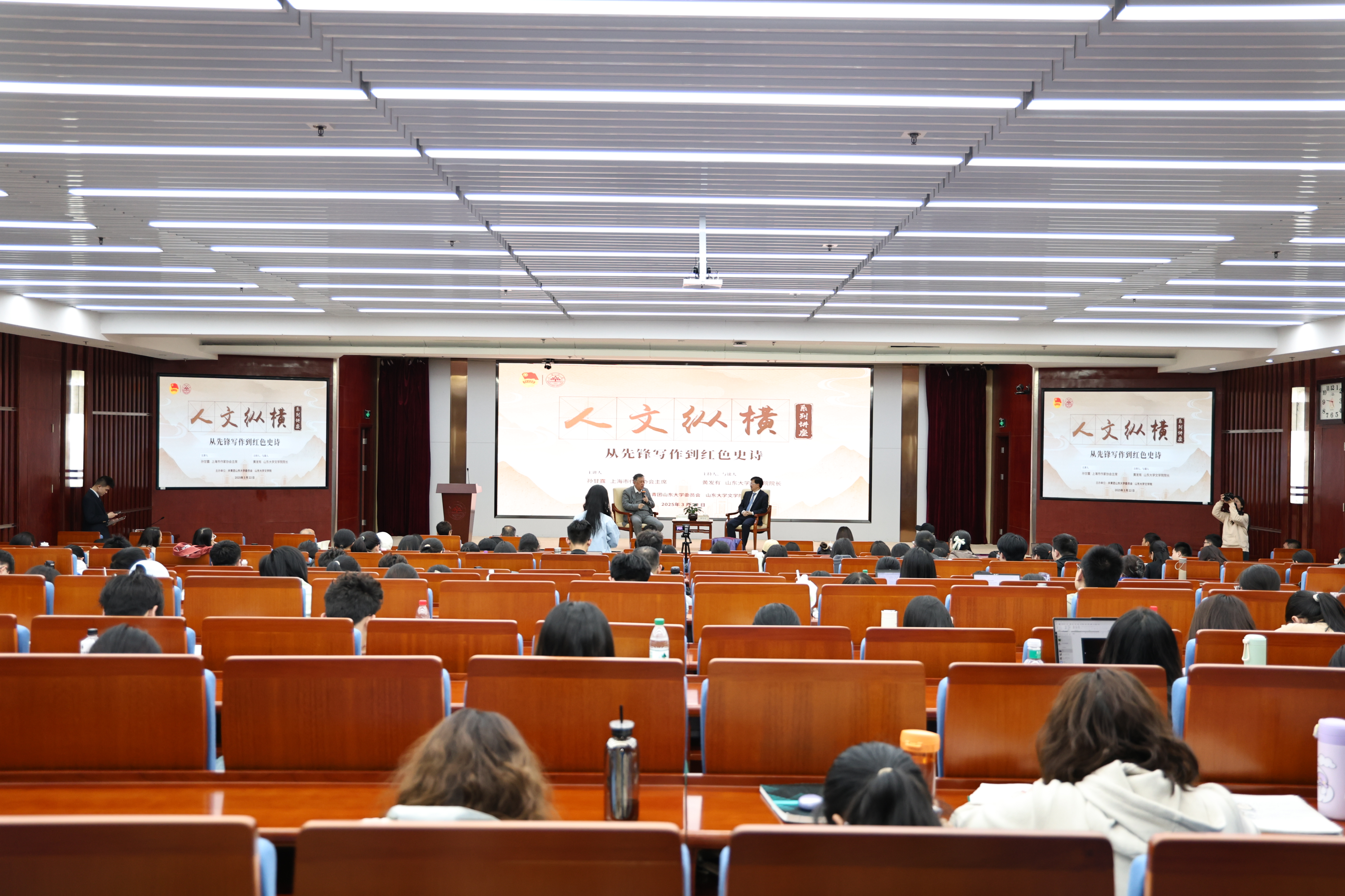 本次讲座在威海校区、青岛校区同步设立视频分会场,在公司师生引发热烈反响。活动聚焦从先锋文学到红色史诗的创作转型,为新时代文学创作与研究提供了新的思路与启示。下一步,公司将继续深化“创作+研究+育人”一体化模式,通过举办系列专题讲座、创意写作论坛及文学沙龙等,着力推动文学教育创新与创作实践深度融合,不断推进创意写作学科发展,培养新时代文学领军人才,为构建中国自主的文学话语体系持续注入山大力量。
