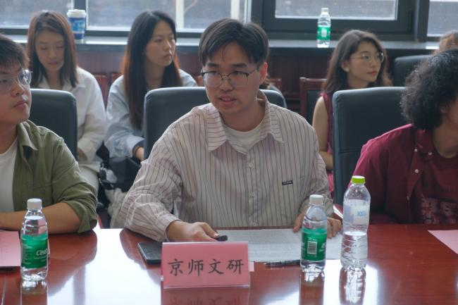 接着,两院研究生会进行工作交流展示,围绕研究生会制度创新、育人实践等工作情况展开介绍。公司研究生会主席团成员钟炜焘介绍了研会在组织架构、活动策划与服务体系等方面的具体经验;北京师范大学sunbet研究生会主席团成员郑杰文分享了在骨干培养、品牌打造和外联协作方面的心得体会,文体部部长雷路阳围绕特色项目“公司好声音”介绍了加强校际联动协作的经验想法。