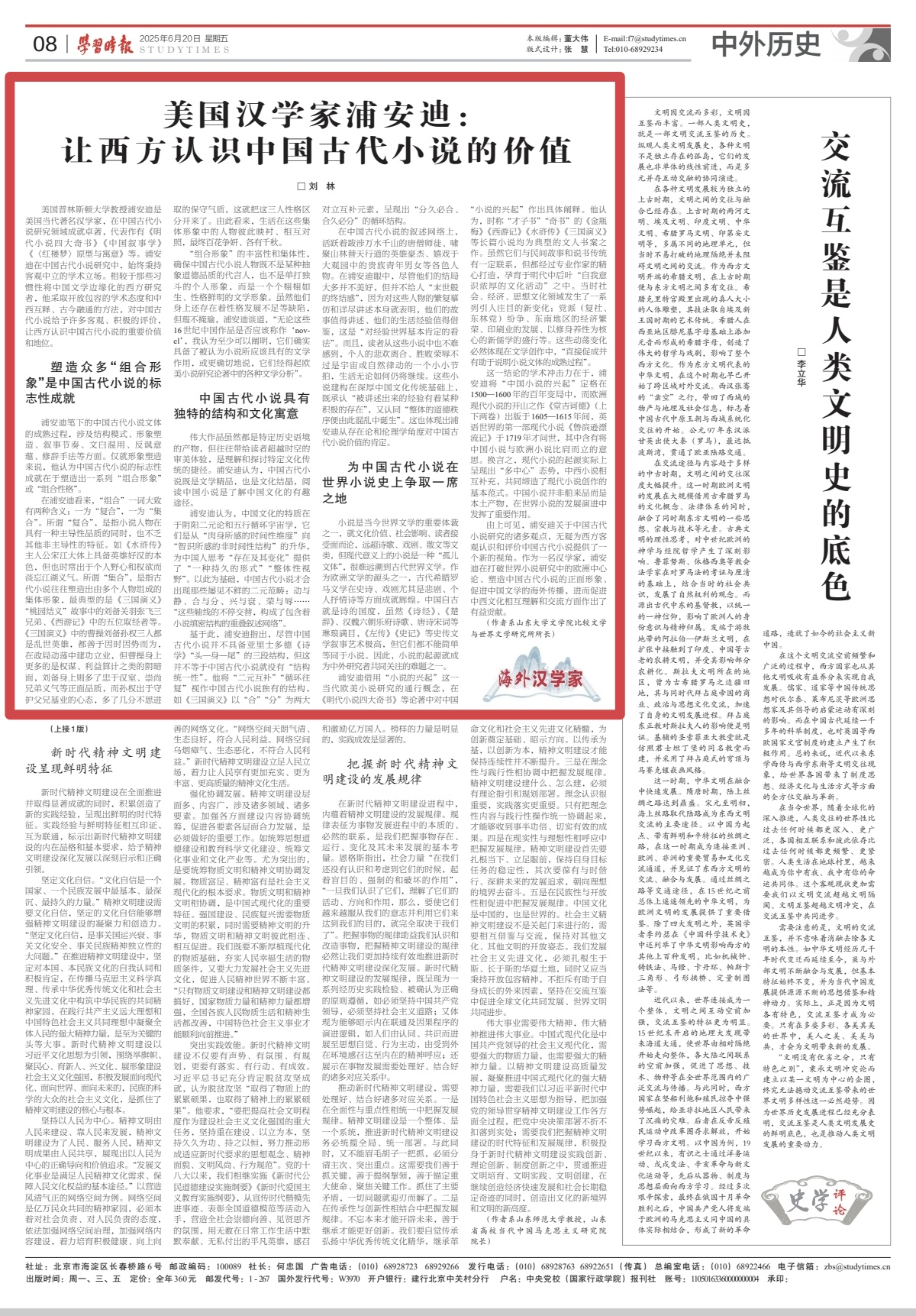 在该报刊的专题文章中,刘林教授系统论述了浦安迪教授的学术突破,并通过《明代小说四大奇书》等著作证明:中国明代中后期(1500-1600年)诞生的《金瓶梅》《西游记》等文人书案之作,其时间早于西方《堂吉诃德》近百年,这一发现揭示了现代小说的起源实际上呈现出“多中心”的态势,在世界小说的发展演进中发挥了重要作用。