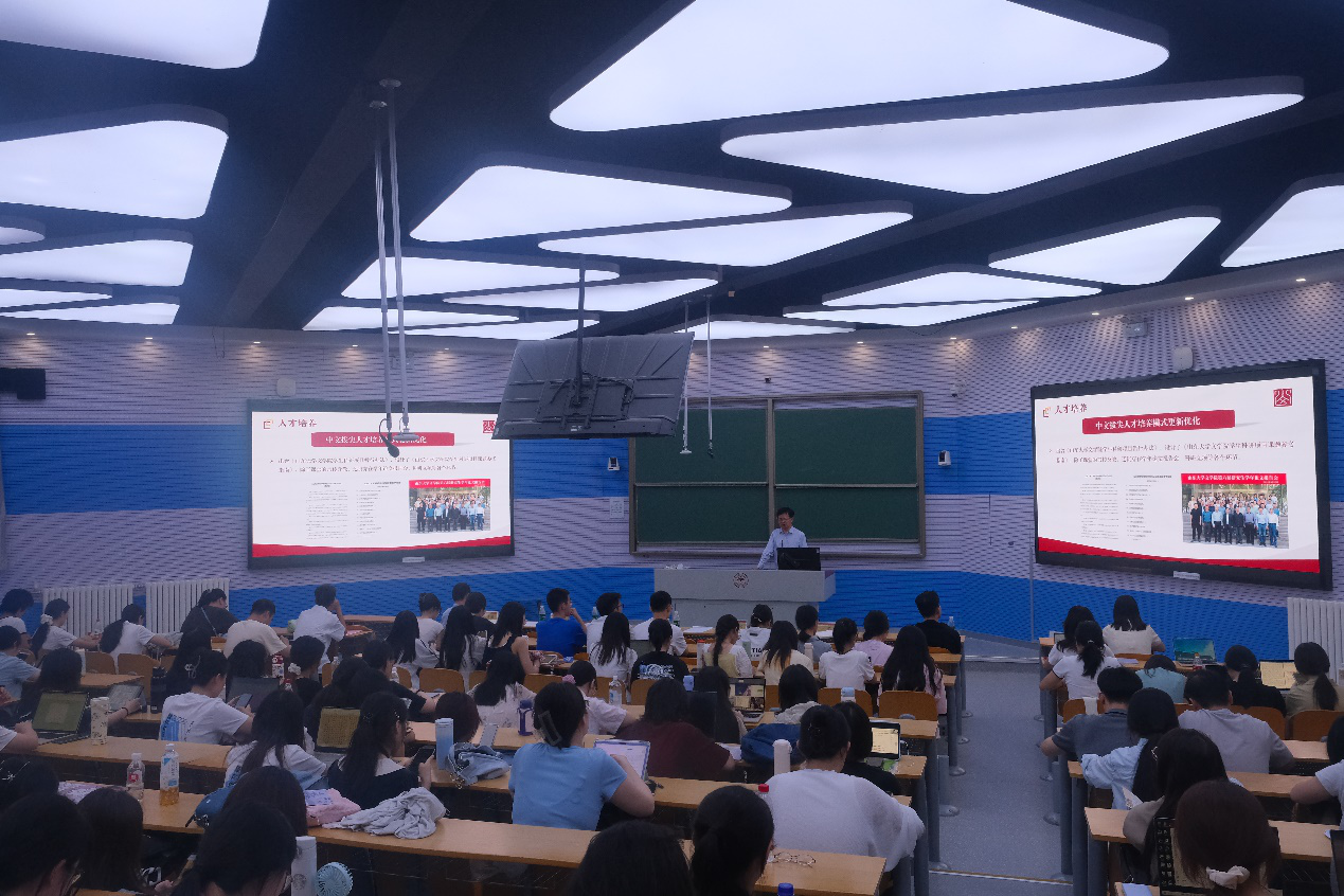 王萌以“在AI时代锚定中文学科的价值坐标”为主题,结合当下现实,强调了在充满挑战的AI时代留下属于中文学科独特声音的重要性。针对“研究生如何在AI时代找到自己的节奏”这一问题,他向同学们提出倡议。一做扎根文本的深耕者,深入挖掘文本及其背后的民族与时代精神。二做善用AI的共创者,让技术服务于学科研究,以批判性思维警惕AI的“标准”答案。三做投身现实的传播者,将学术研究与现实需求相结合,成长为兼具深度、温度与担当的青年一代。