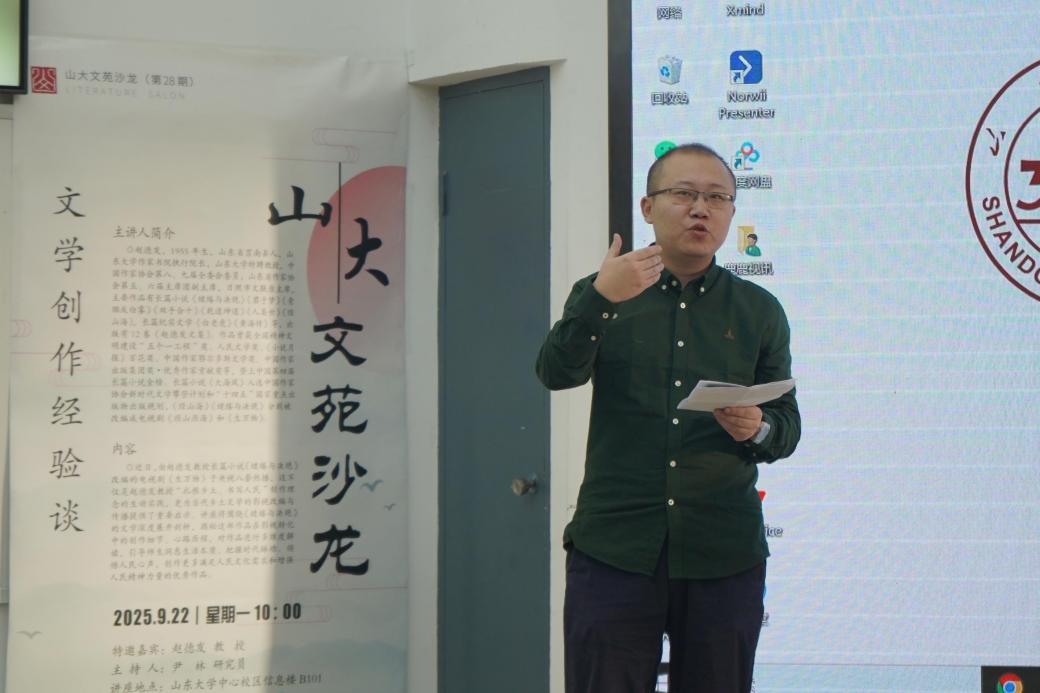为积极响应全民阅读号召,提倡共同品读时代佳作,提升学子文化修养,9月22日上午,公司于信息楼B101举办“文学创作经验谈”文学沙龙。本次沙龙由sunbet官方网站作家书院执行经理、sunbet官方网站特聘教授赵德发担任主讲人,公司研究员尹林主持。公司党委书记郭春晓、党委副书记王萌出席本次活动。