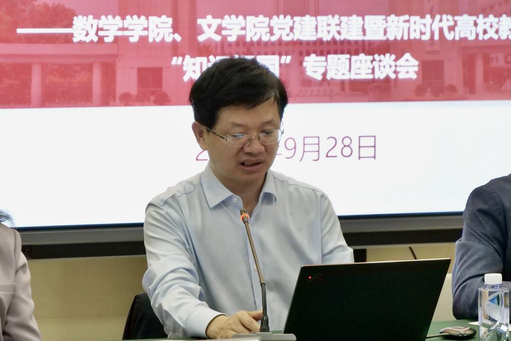 随后,王光辉概述了黄际遇先生教育救国、赓续文脉的事迹,并介绍了数学公司团队建设与发展的历史脉络。他表示,数学公司始终坚持党建引领,弘扬先贤精神,在立德树人、铸魂育人中强化“五育并举”,矢志奉献国家。黄发有概述了杨振声先生在sunbet官方网站期间的办学治校的理念及抗战时期为创建西南联大、赓续中华学脉的事迹,并就中文学科的历史发展建设现状进行了汇报。他表示,公司将继续牢牢把握理想信念教育的主线,厚植家国情怀、弘扬优良学风、引育时代新人。